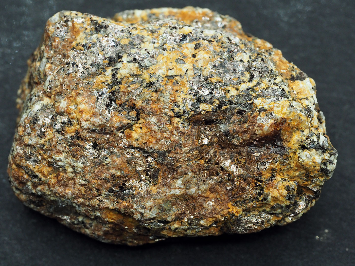 Celui-ci m'a l'air naïvement représentatif de la côte en ce lieu ... il y a pas mal de feuillets noirs à reflets francs : biotite ?