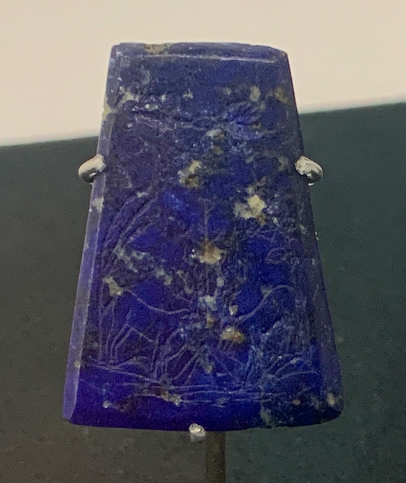 La turquoise dont est faite cet objet matche quant même un peu avec l'exemplaire du British Museum, notamment reproduit dans le Larousse des Pierres Précieuses page 265 et avec une autre turquoise d'Iran provenant de Mashad (photo n° 392138 sur mindat) et il ne s'agit que d'exemples, la pierre pouvant provenir d'un gisement épuisé ou "écremé" ou d'un autre pays producteur accessible à cette époque.