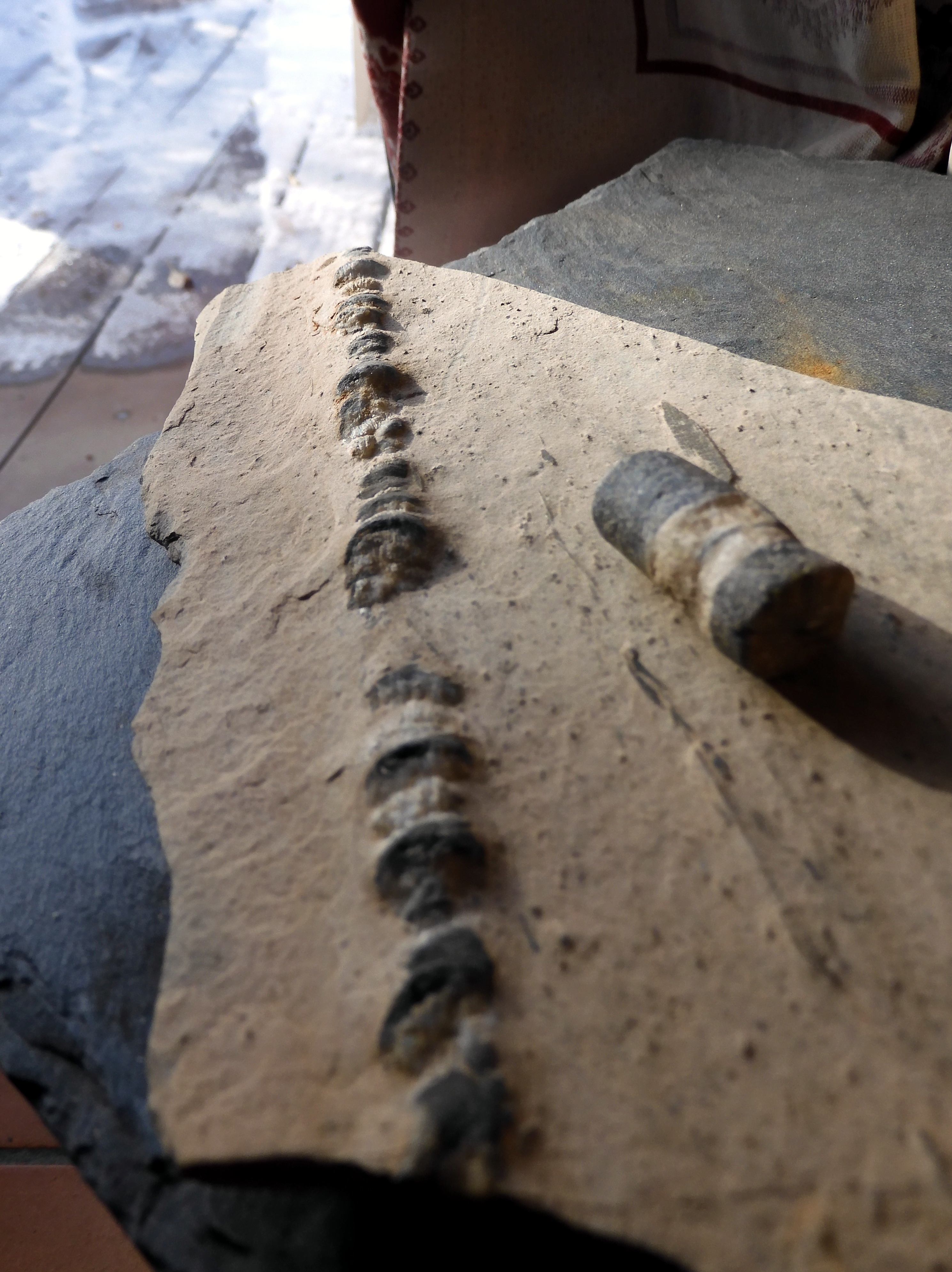 j'ai trouvé d'une part sur une plaque de schist une veine annelée grise et blanche, et un petit bout , comme un morceau de carottage qui ressemble à cette veine (2eres photos) et d'autre part une trace "annelée" massif schisteux  du pic du mas de la grave 05 au dessus de la Grave, quelqu'un peut-il m'aider à  les identifier , Merci