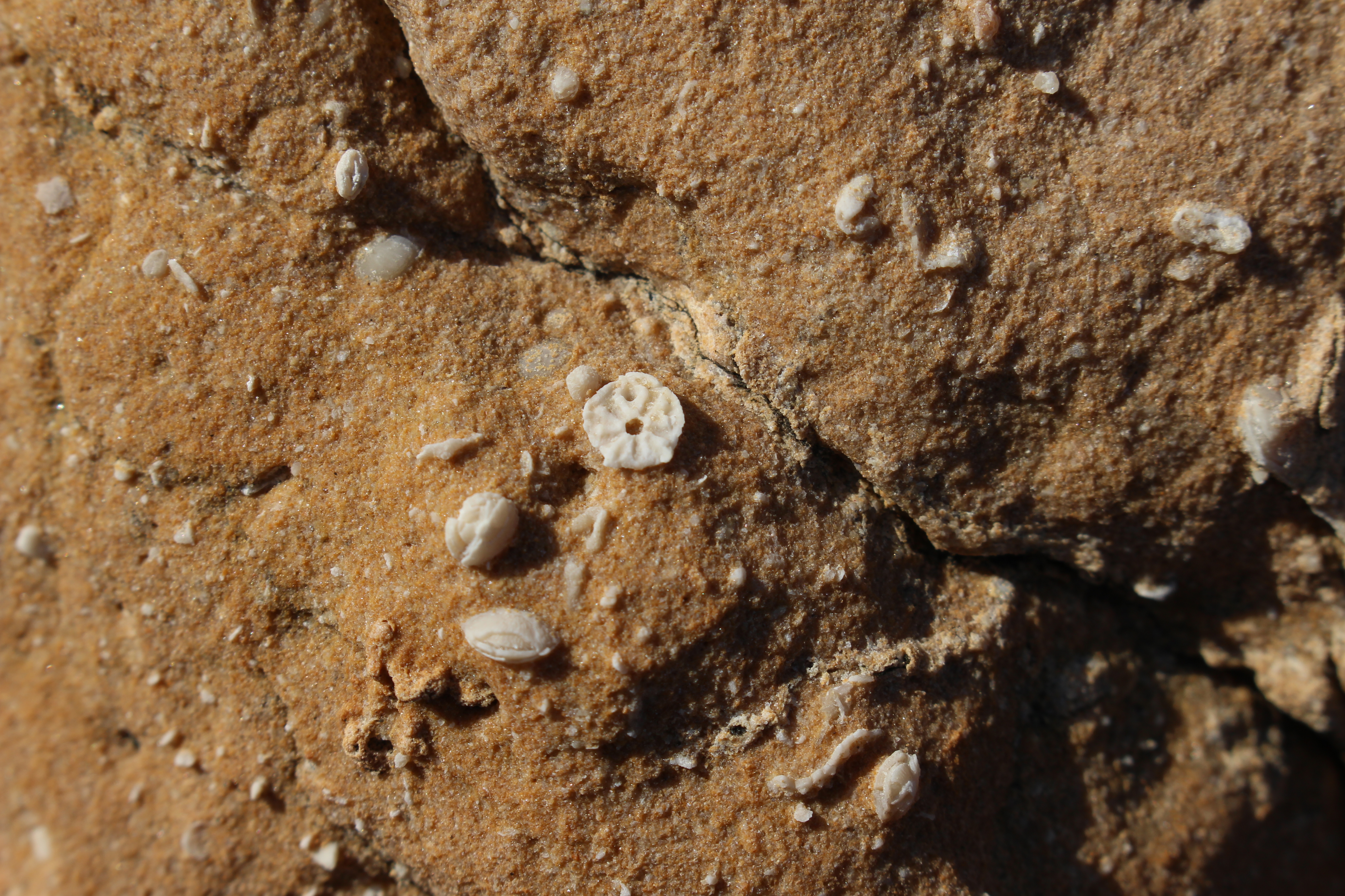 j'aurais du faire une vraie phrase: ça ressemble aux calcaire qu'on trouve dans nos molasses miocène, calcaire compact avec des fragments ou huitres complètes, parfois dépassantes, avec en surface des motifs concentriques