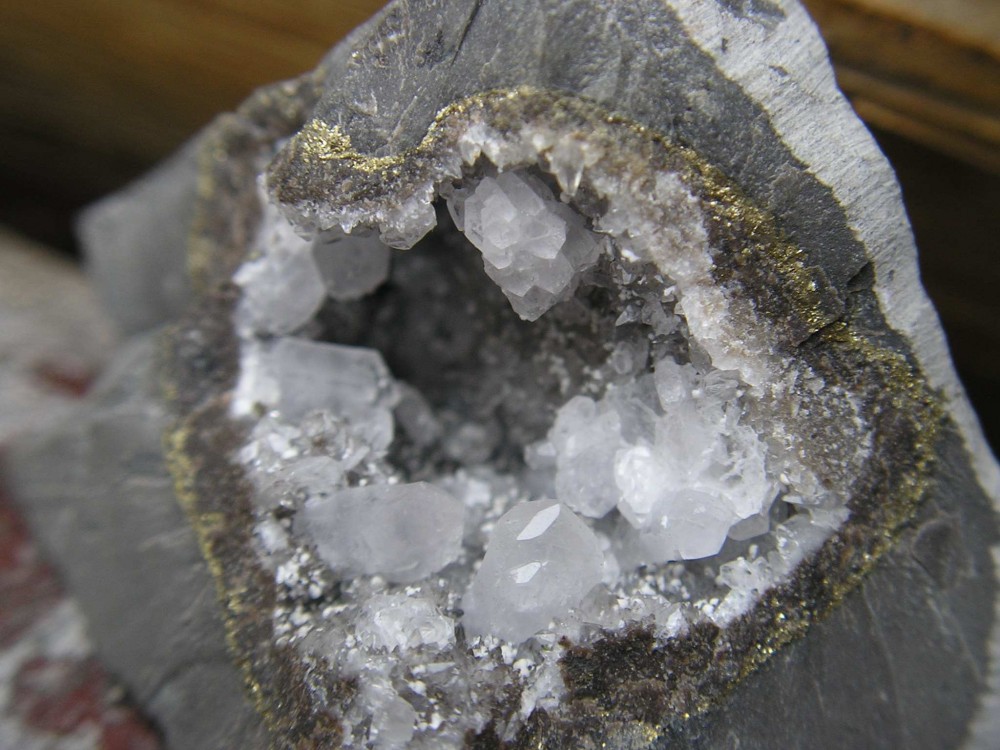 Dans les vides du septaria (septum = enclos, septa = cloison) l'eau résiduelle va former un enduit de calcite; puis les eaux venant de l'extérieur du septaria, apportant divers sels, permettront le remplissage (éventuel et plus ou moins complet) par divers minéraux des cavités résiduelles du septaria… Les mouvements engendrés par les bouleversements géologiques peuvent fracturer le septaria, en déplacer les morceaux, etc. les eaux chargées en sels peuvent dissoudre, transformer des minéraux déjà présents, ressouder, reminéraliser par apports de nouveaux minéraux, …