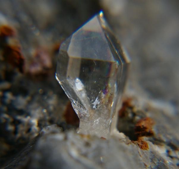 -quartz 2cm sur gangue trés fine en forme de tige(cristal aérien avec un contact trés discret à l 'arrière).