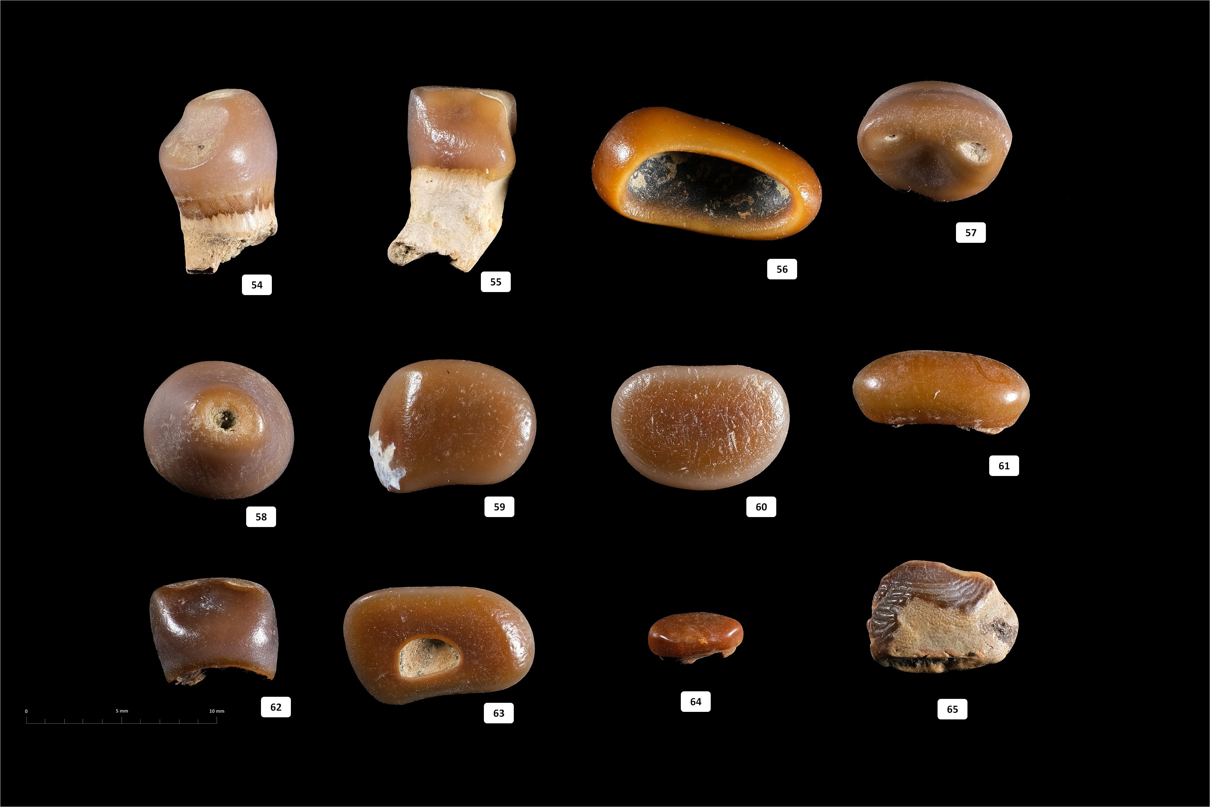 - 65 : dent endommagée de Ptychodus ou apparenté