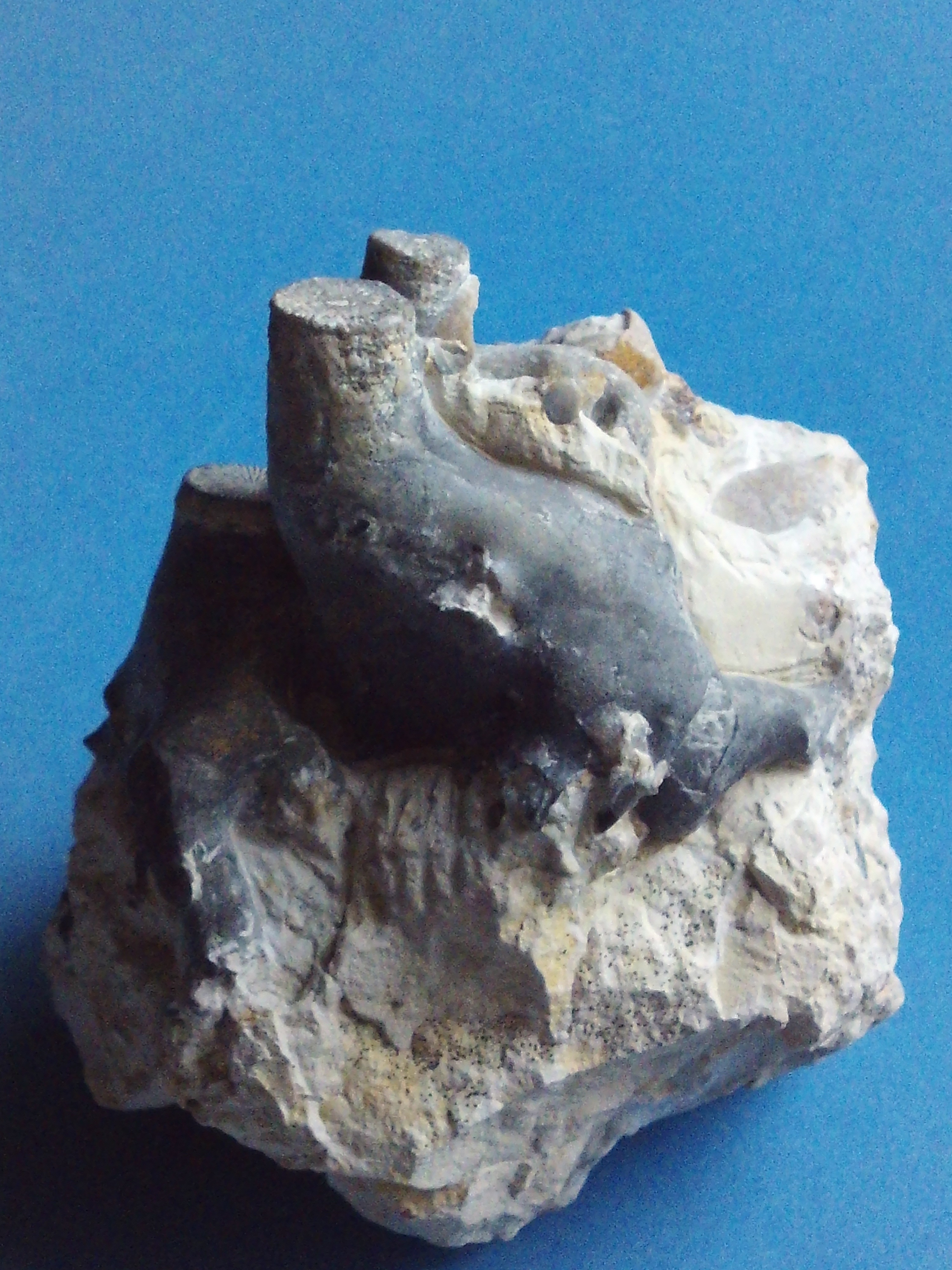 Est ce que cela vous parle ?  ... J'ai tellement de tiges de crinoïdes que je pense pas me tromper. Mais l'objet est en piteux état, mangé par des vers en plus.