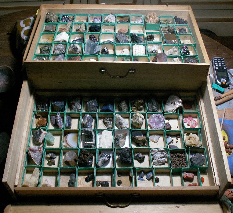 Voici un coffret que j'ai récuperé il y a déjà un petit moment. à l'intérieur 2 tiroirs avec des petite boite en carton. Je ne sais pas de quand il date exactement...... :clown: