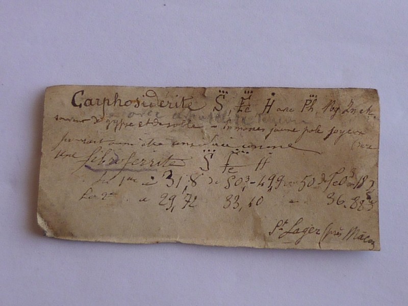 Comme il le dit lui même, le terme de carphosidérite est à proscrire, le minéral étant plutôt une jarosite.