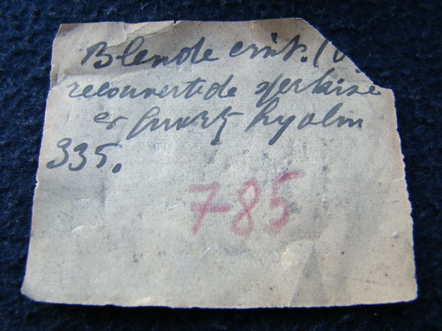 Pour les sperkises sur blende aucune idée, je ne les distingue pas bien sur l'échantillon, ce ne serait pas tout bêtement de la marcassite classique ?. Compte tenu des origines mondiales des échantillons, ça risque d'être chaud pour retrouver. Bon après il suffit qu'un de nous ait le même.