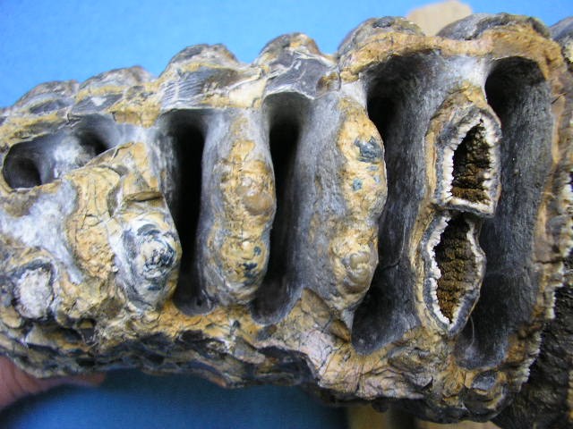 j'ai une molaire et un morceau de défense d'un même mammouth Trogontherii trouvés dans les déblais d'une exploitation d'une gravière.