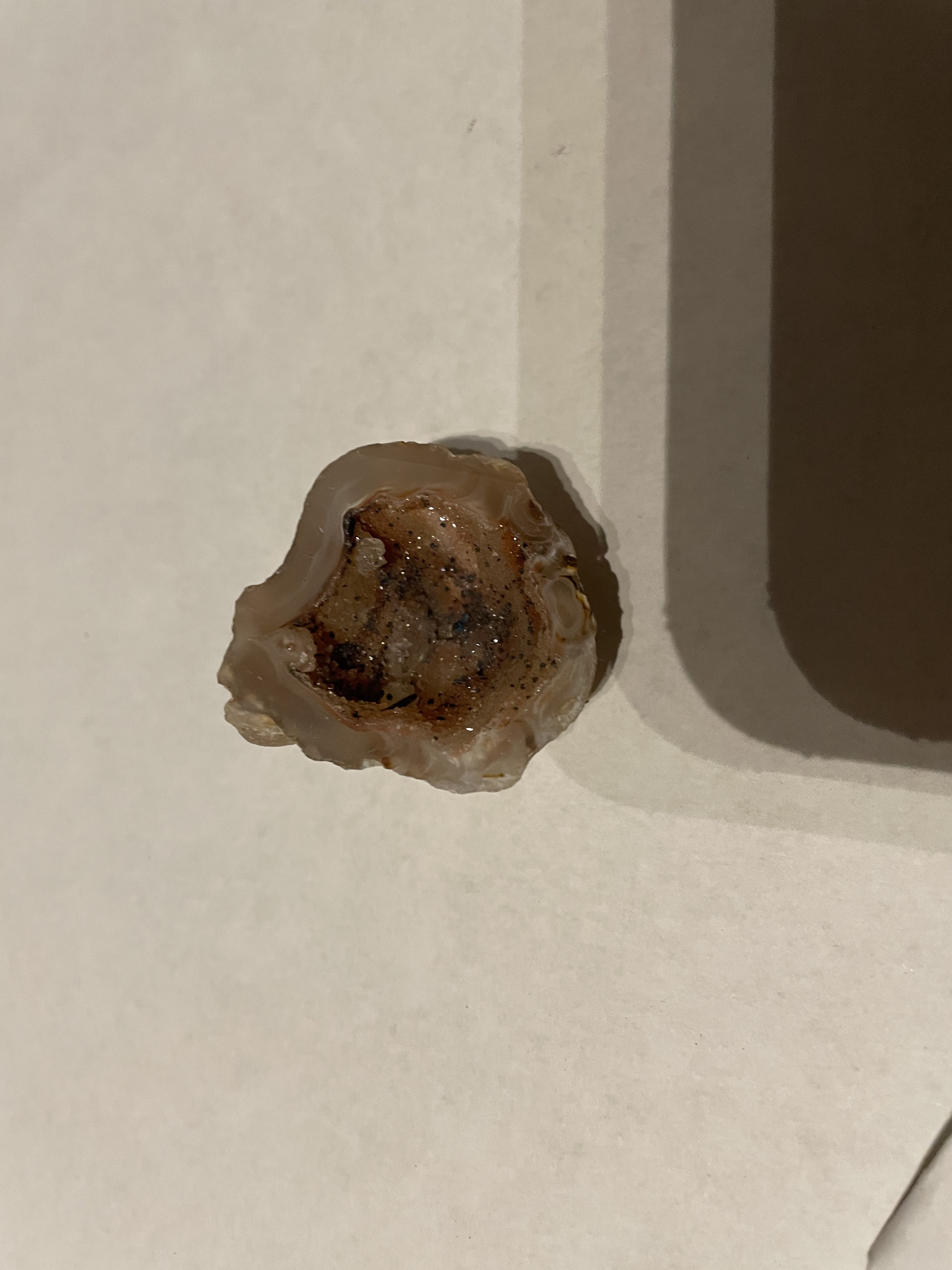 6géode de quartz ou calcite; 11 résidu; 14 fluo ???; 15 quartz dans agate; 18 olivine dans basalte; 22 calcite; 27 obsidienne; 46 calcite; 48 résidu; 52 obsidienne;