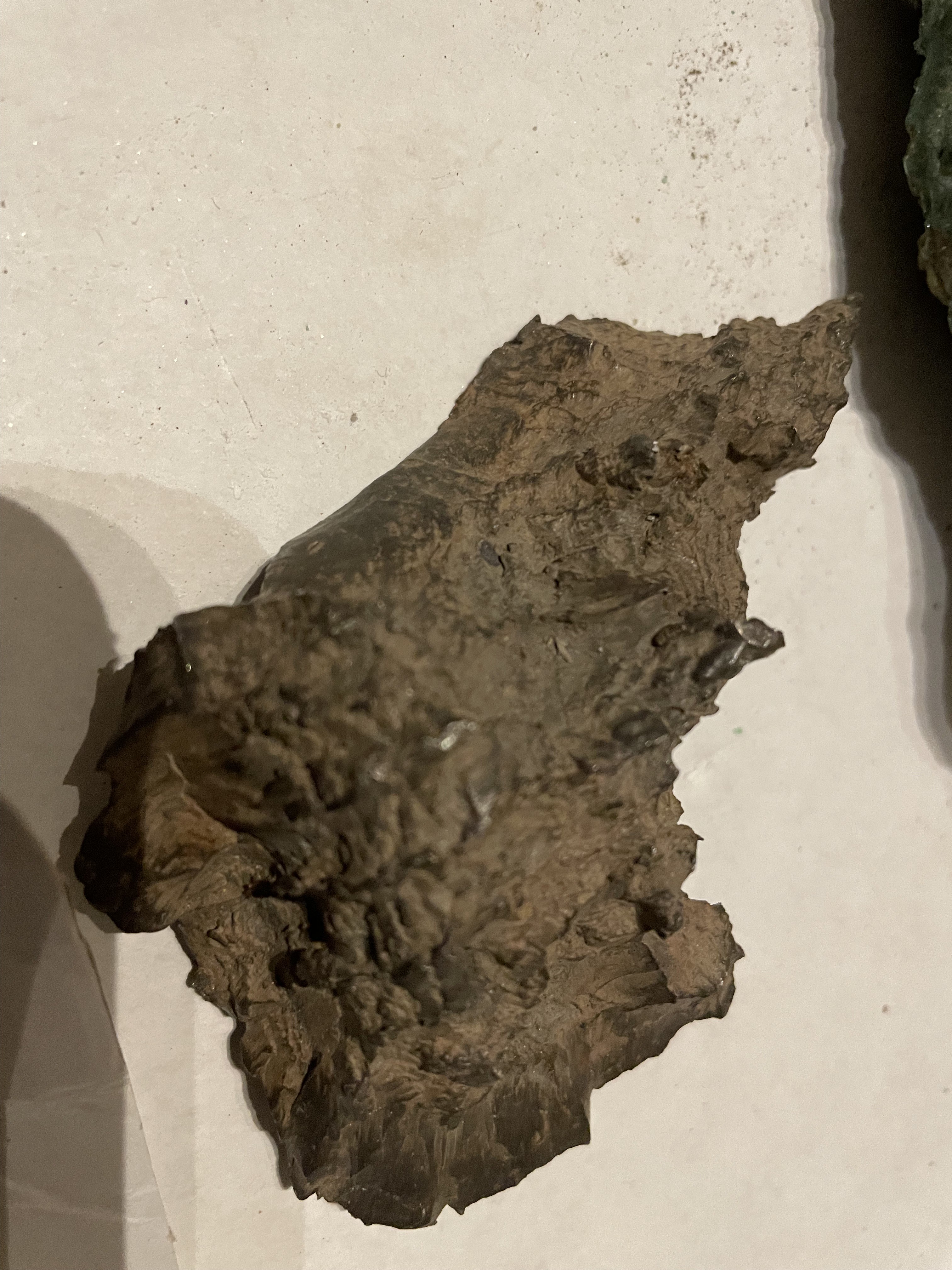 12 ressemble à un résidu de fusion industriel. Pas obsidienne. Faire test dureté, densité, trace