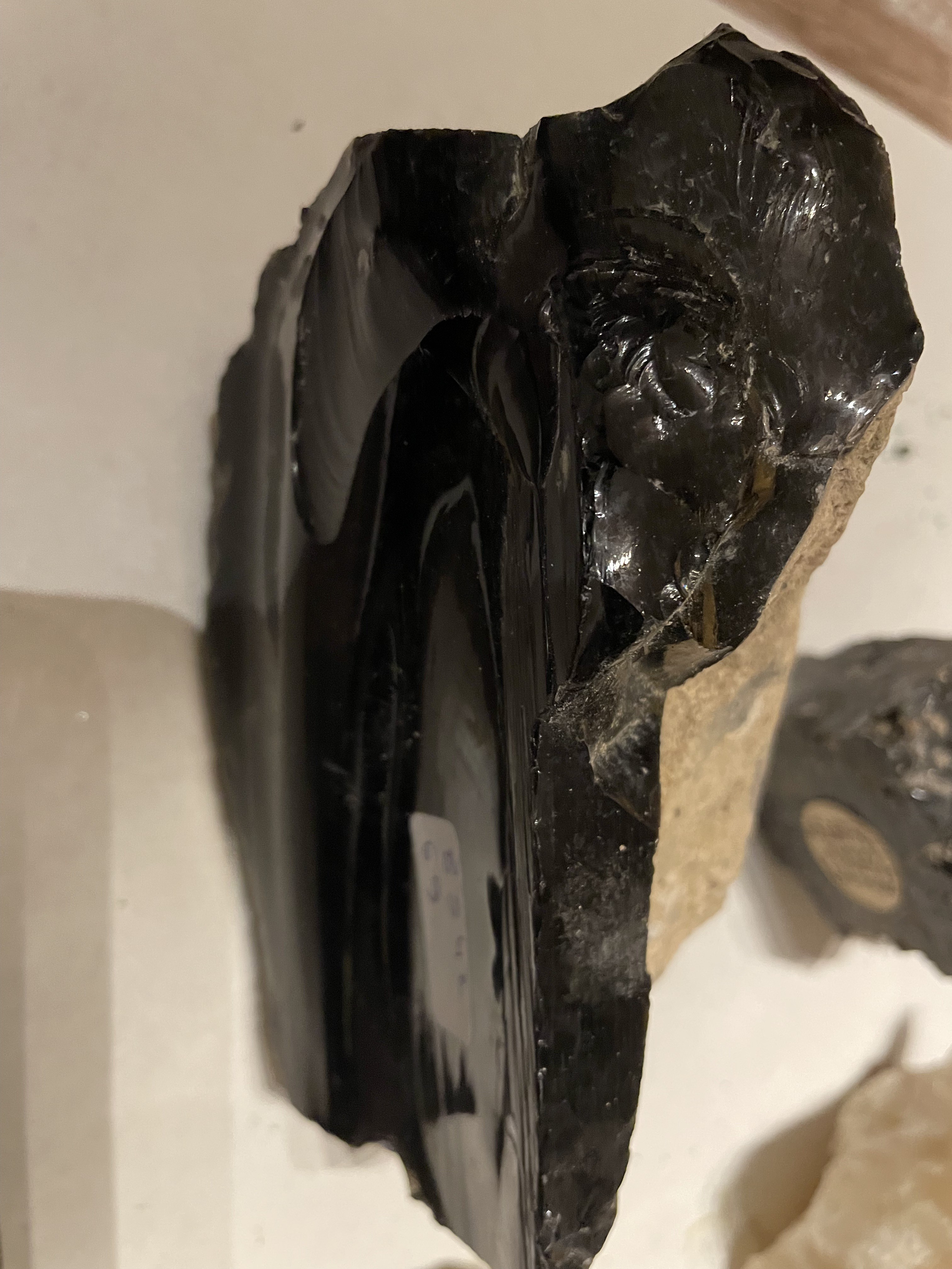 La collection est plutôt ancienne (70 ans?), plusieurs pierres ont l'air en mauvais état (effritements), et je n'ai malheureusement pas d'informations sur leur provenance, a part pour de l'obsidienne qui viendrait des USA (désolé de ne pouvoir fournir plus d'informations!)
