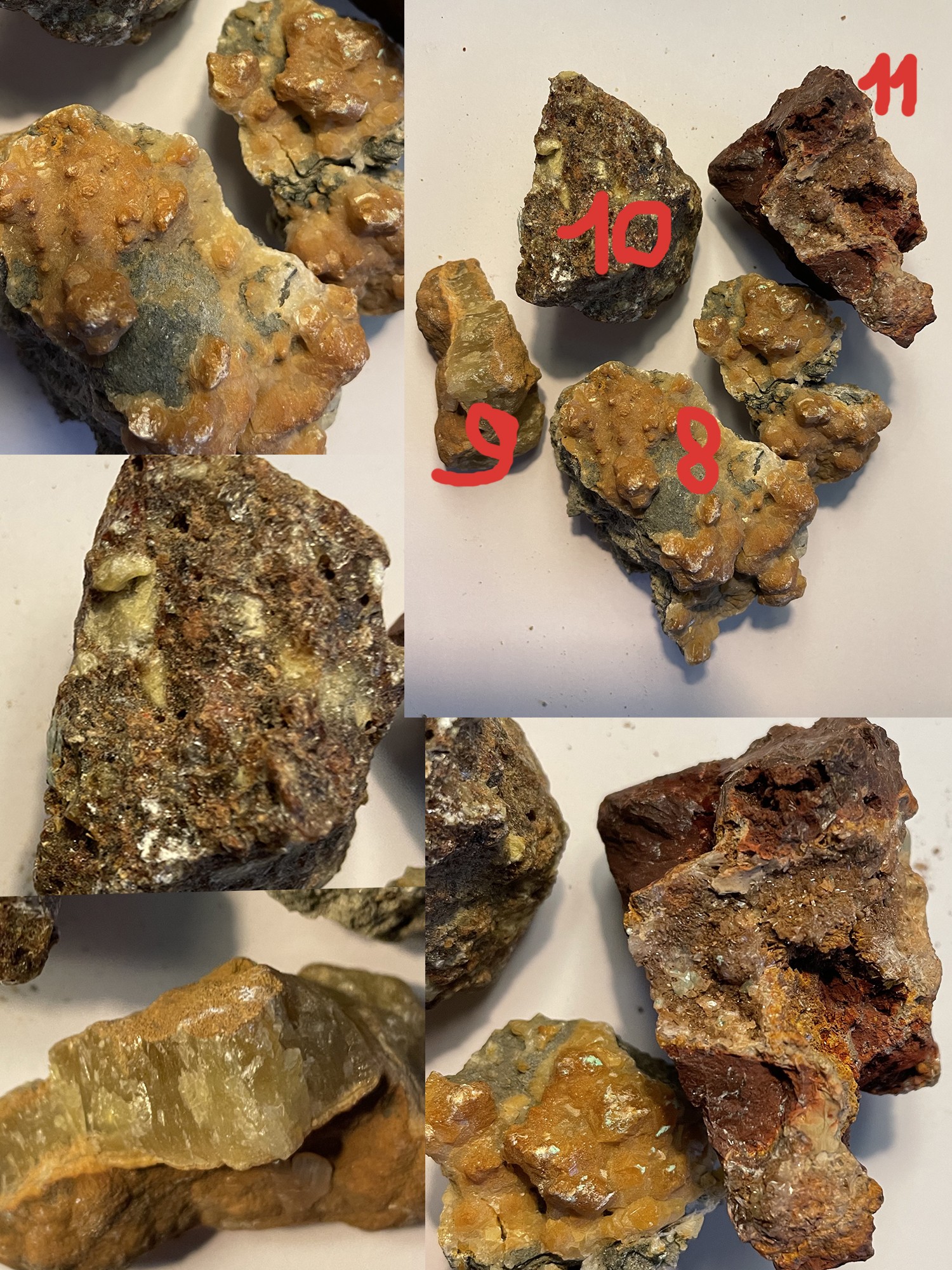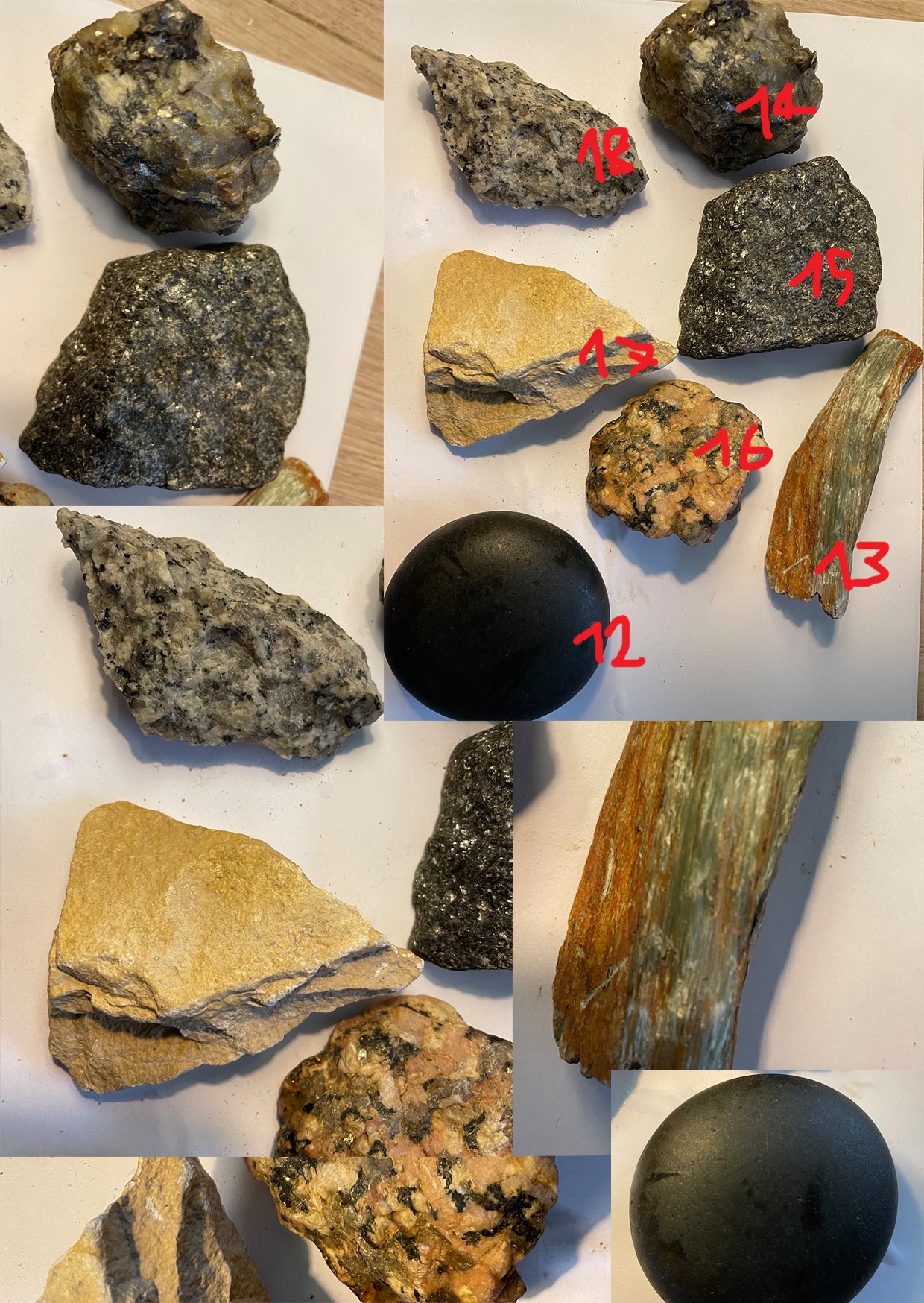@MPR est-il possible que vous donniez les dimensions de chaque échantillon que vous voulez identifier, dans la mesure où il est quasiment certain qu'il y a des uranifères dans ce lot, la taille ou volume est une donnée importante à prendre en considération. Pour votre sécurité (plus c'est gros plus ça balance des radiations et du radon)