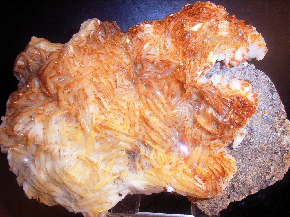 Mais, il y a aussi des vanadinites orange, et meme jaune. Alors, le doré ne m'etonne pas du tout ! je vais essayer de prendre en photo une que j'ai nettoyée cet aprem aux ultrasons, elle est entre le jaune et l'orange.