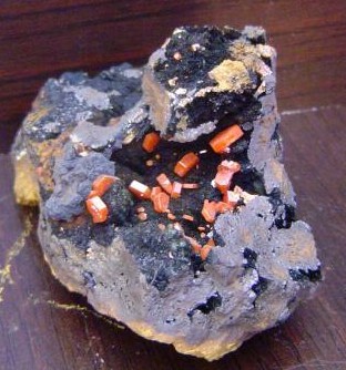 Ces cristaux de vanadinite des Vosges étaient de petits cristaux plutôt orangés et mal exprimés,  propriété d'un géologue.