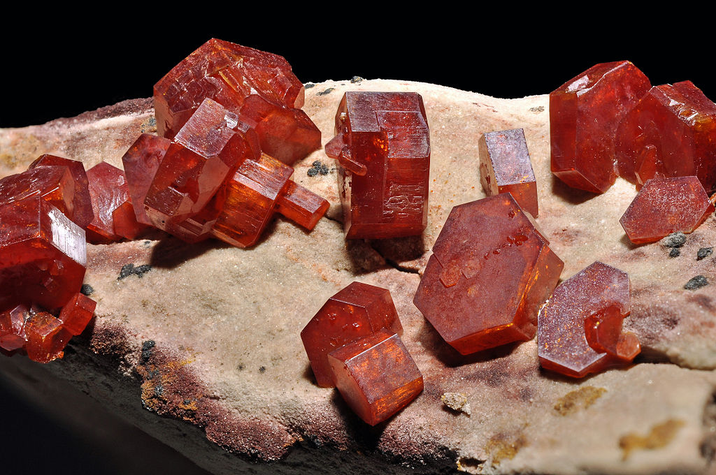 Cristaux de Vanadinite, photos de cette espèce minérale, les gîtes et leur géologie, minéralogie et cristallographie du minéral, discussions et échanges.