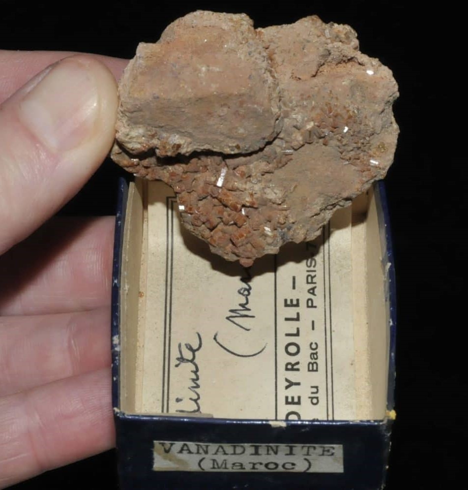 Idem pour la provenance. Moins catégorique pour le phénomène de décoloration. Je pense que ça dépend beaucoup des échantillons. J'adore la vanadinite et du coup j'en ai énormément en collection, certaines depuis très longtemps (plus de 30 ans). Je n'ai pratiquement jamais observé de décoloration significative et pourtant je ne prends pas de précautions particulières.