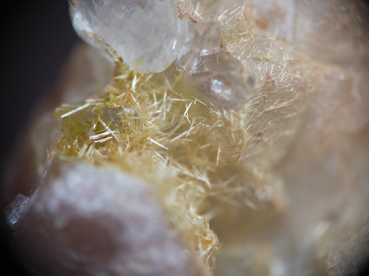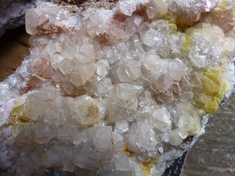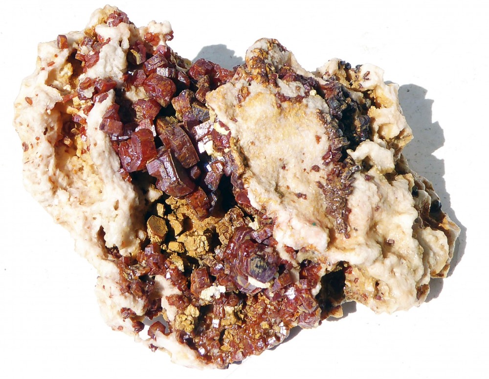" pièces que j'ai récupérées il y a quelques années. Étiquetées comme vanadinite et pyromorphite de Corout en Algérie. Je n'ai rien trouvé sur Mindat qui se rapproche de cela, et la localité reste un mystère pour moi. La gangue semble contenir du quartz. Si quelqu'un a déjà vu ses soeurs et a plus d'info je suis preneur !