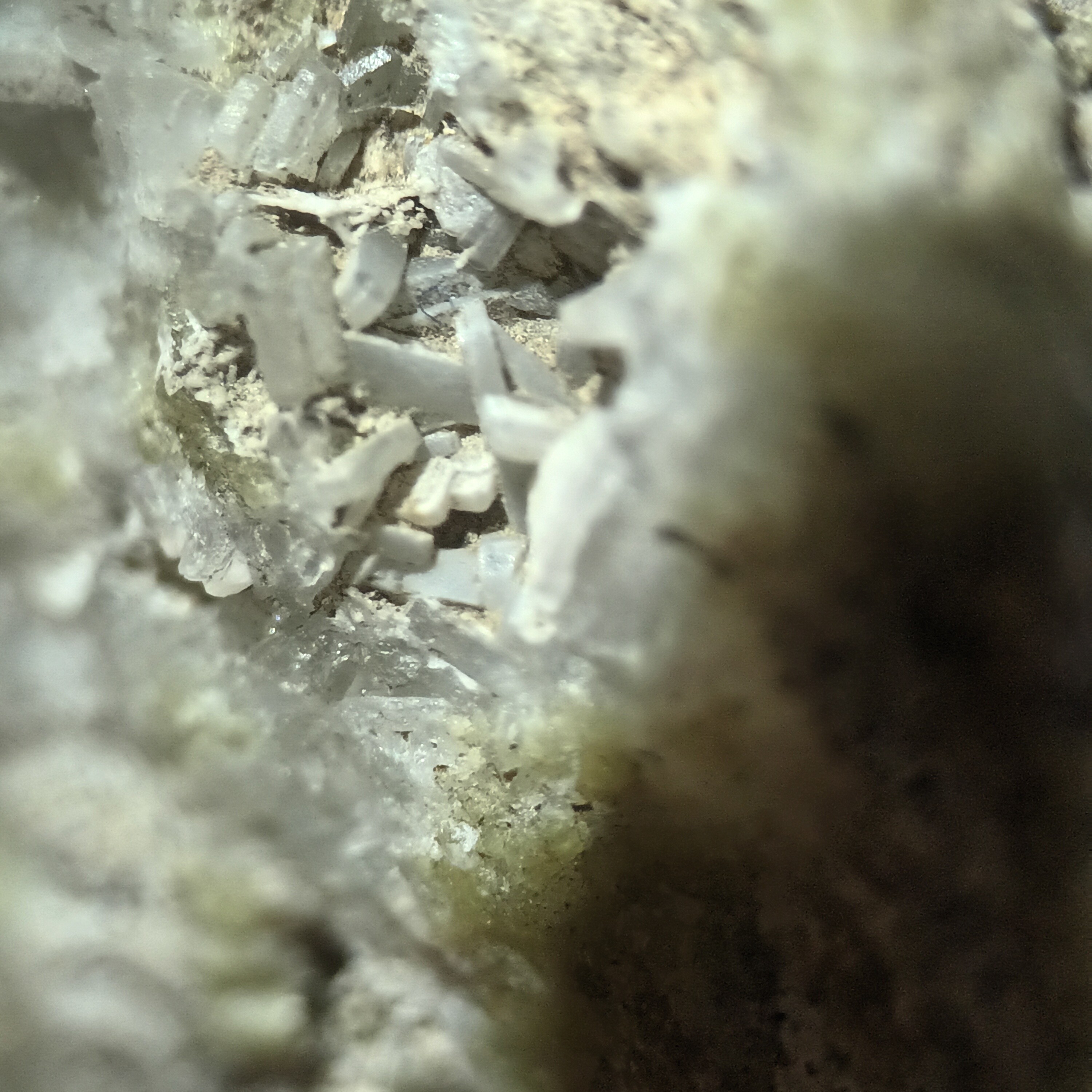 trouvé un autre mineral  à proximité.  Est-ce aussi de la prehnite? Du grenat dematoïde?....?
