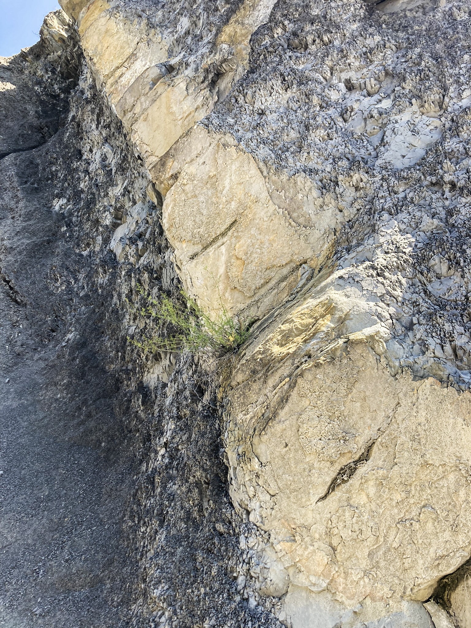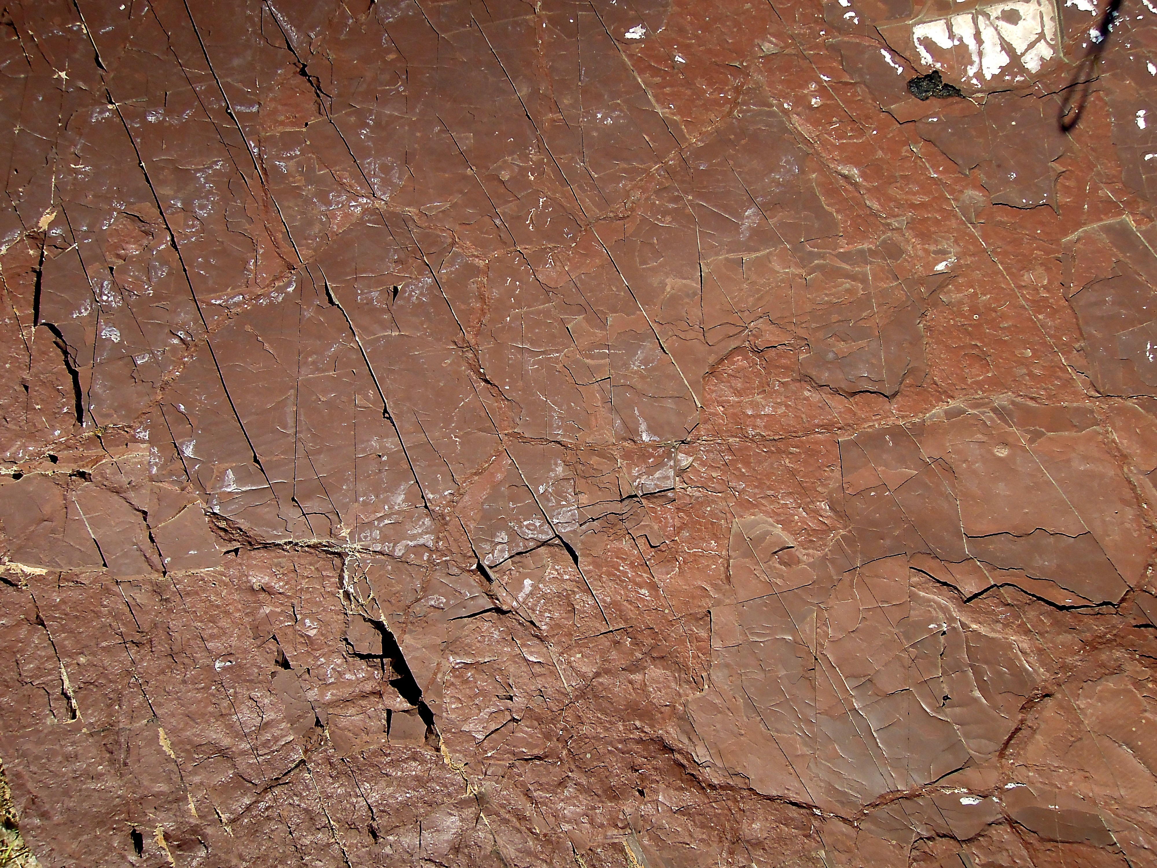 Regardons une de ces fractures de plus près, ici dans un niveau qui à l'air plus argileux: