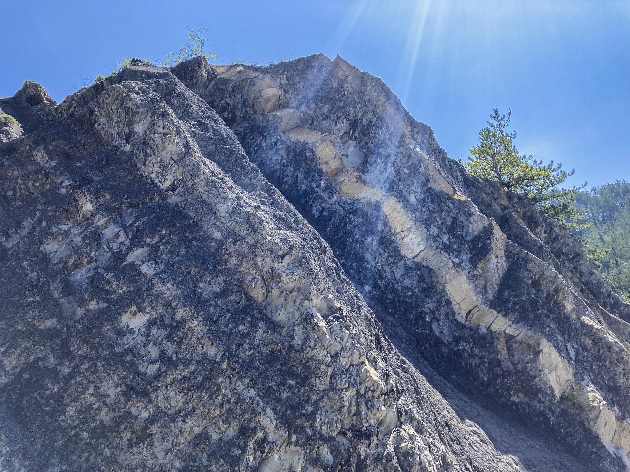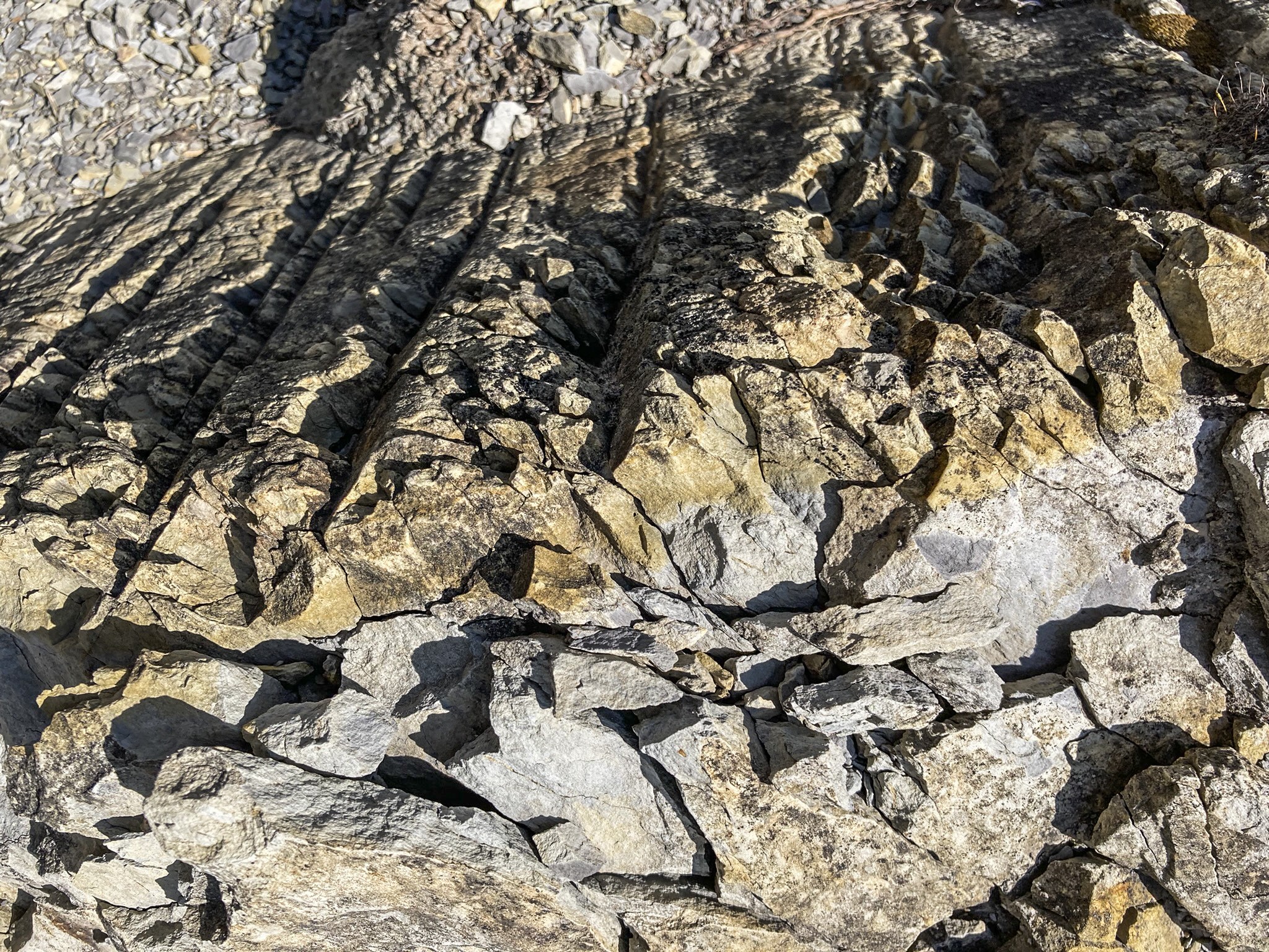 On voit les couches, et on devine la fracturation perpendiculaire aux couches.