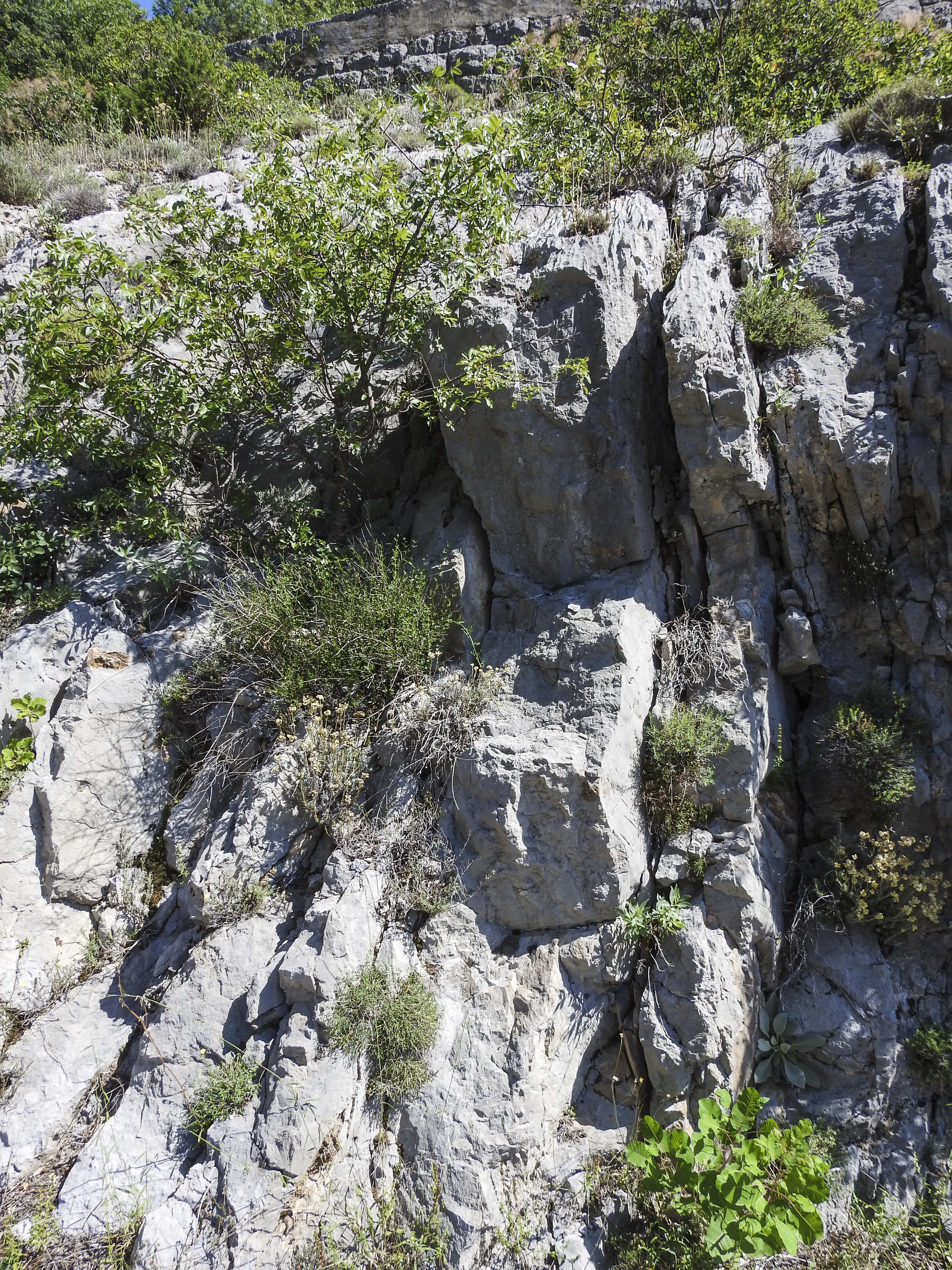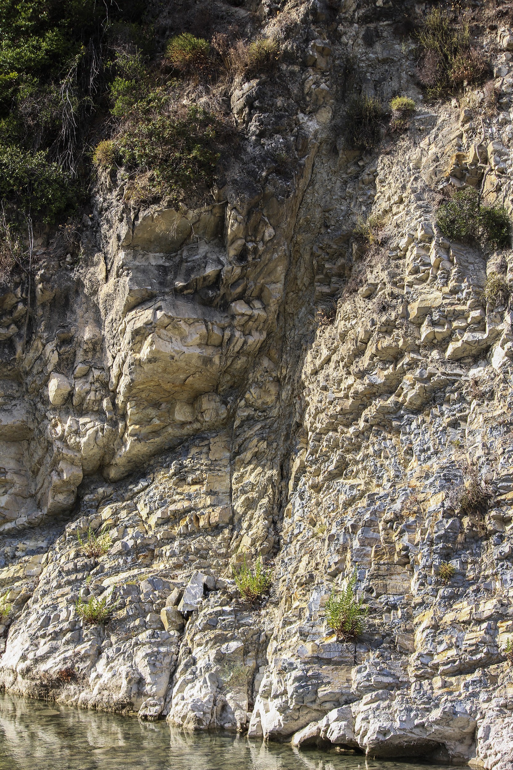 Ici, dans des niveaux marneux, avec visuellement des niveaux plus calcaire, mais la transition est subtile, c'est l'altération qui nous donne une image de la composition, mais que donnerait une analyse?