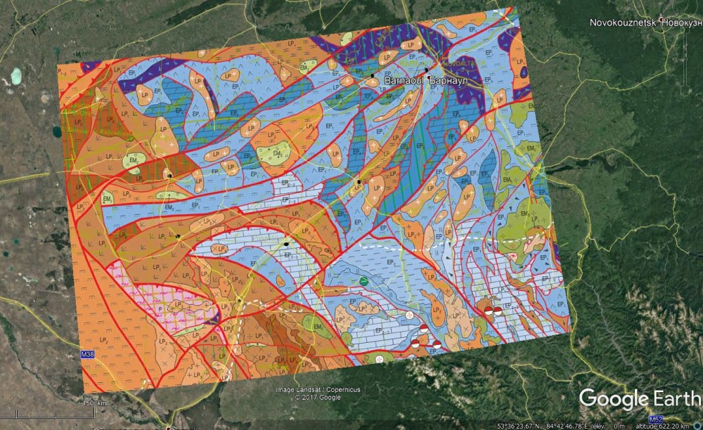 la carte tectonique, dont un extrait a été mappé sur google earth : http://www.vsegei.ru/en/intcooperation/international-project-atlas-of-geological-maps-of-northern-central-and-eastern-asia-and-adjacent-are/