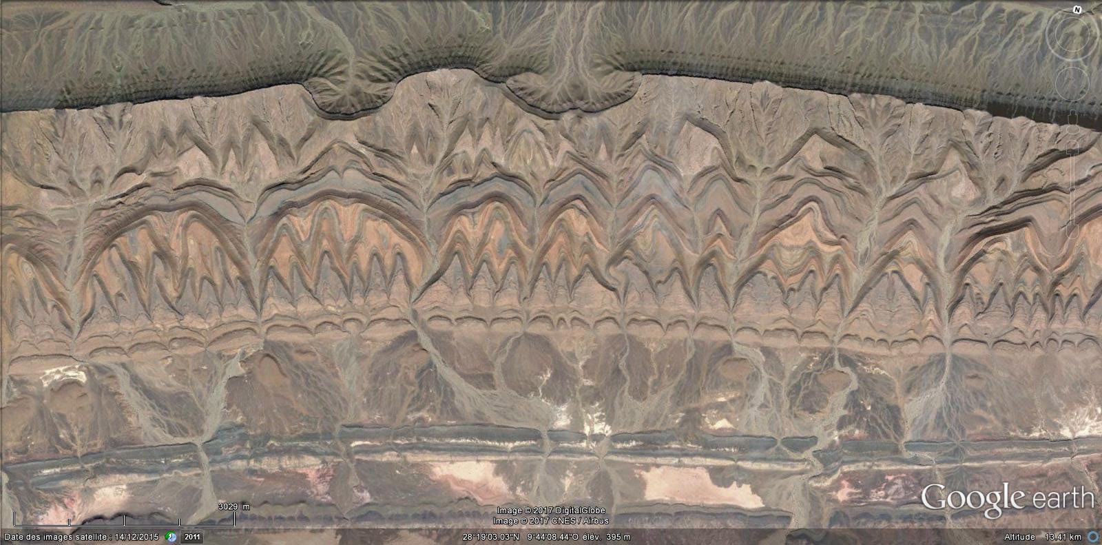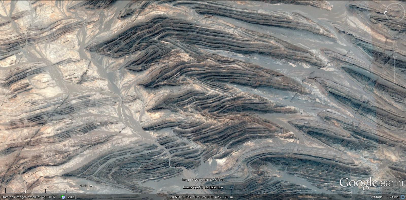 Ce qui est étonnant c'est de voir la complexité du socle et ces gentils plis (150km au moins) dans la couverture.