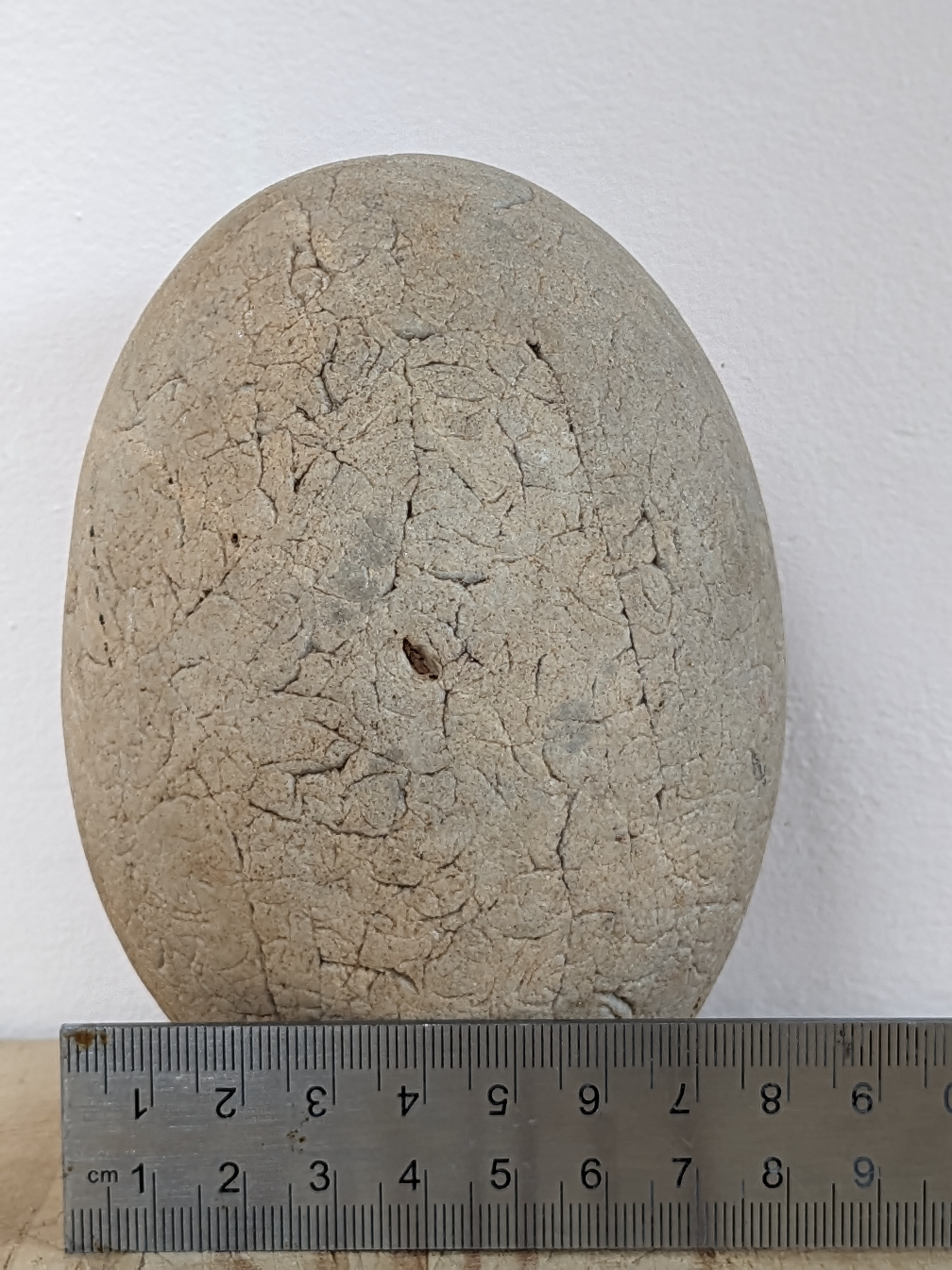 La forme, un galet, les craquelures, ça me fait penser à des galets "mous".  Quand on fait un agrandissement des photos on voit que ce n'est pas homogène, (la coquille n'existerait plus si c'est un oeuf.).