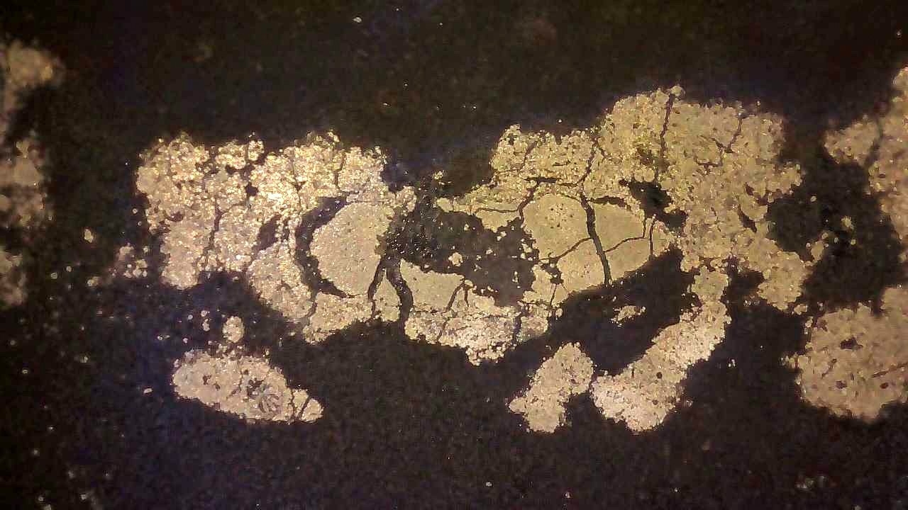 Ça laisse penser que l'activité bactérienne qui produit la pyritisation est impliquée dans la formation des fentes.
