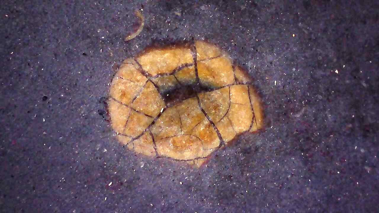 ... mais il est bien possible que la dessication en question soit liée à une surpression de méthane d'origine bactérienne dans le petit ballon, à un stade ou la couronne carbonatée externe est encore imperméable.