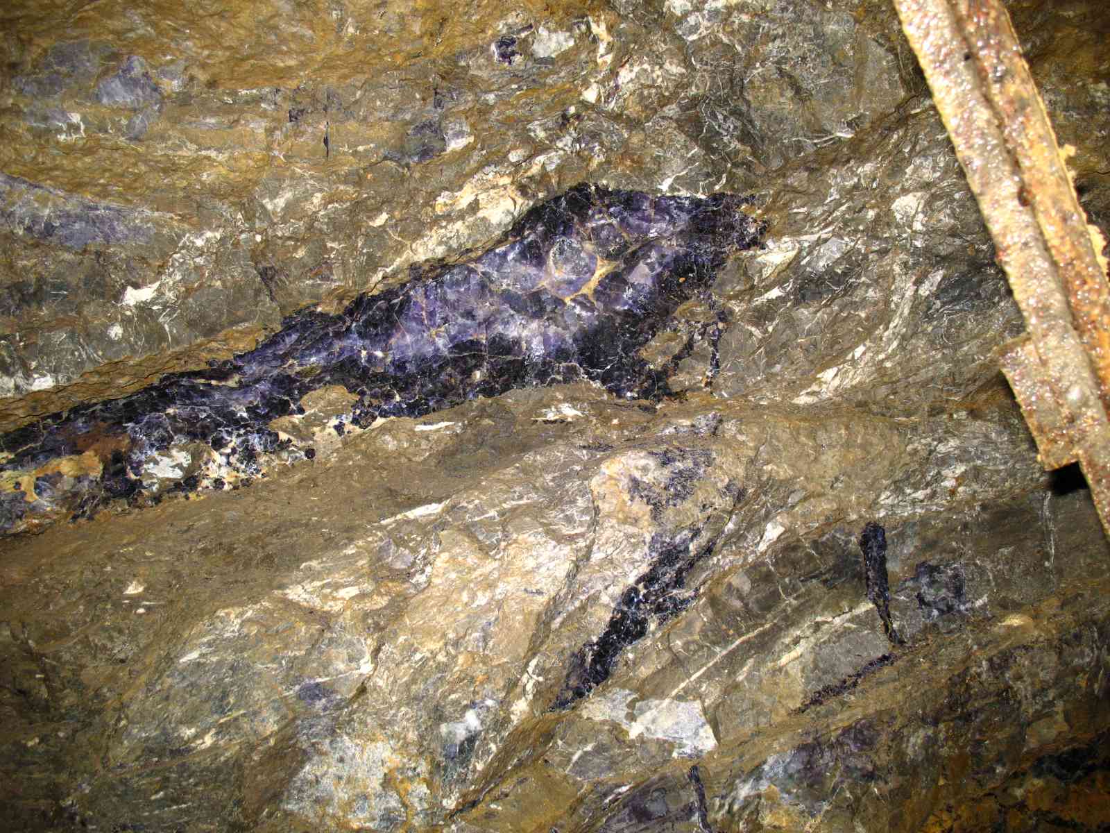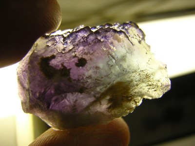 Pour continuer, une lentille de fluo violette perdue dans le calcaire silisifié. c'ets du compact, tres, trop dur a tapper, et d'ailleur la fluo est tres clivable, c'ets la galere :duel: