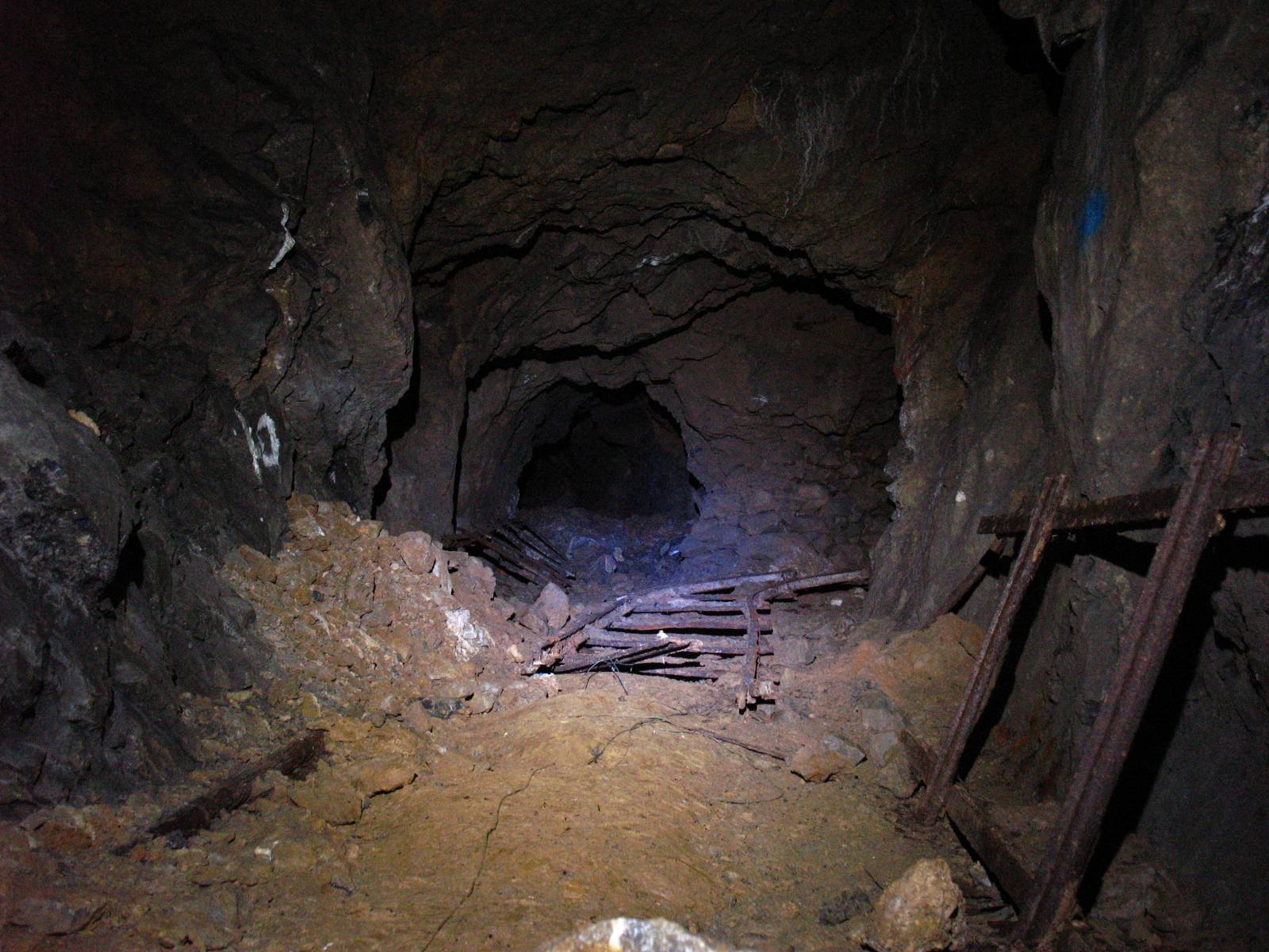 Une photo sans flash, on s'y croirait vraiment non ? :lire: la galerie principale avec ce qu'il reste comme rails. les berlines sont perdues a 100 m de l'entrée dans les bois.