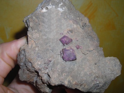 Pour continuer dans les photos et faire ce que j'ai promis hier, voici les cube-octaedres viollet tirant sur le rose. cette piece, quand je l'ai extraite, au momnet ou je retire la main de la cavité (car il ne s'agissait pas d'une poche) avec la piece, voila que tout s'effondre... heureusement, la corde n'a pas ete touchée et j'ai pu ressortir du trou indeme :grand sourire: