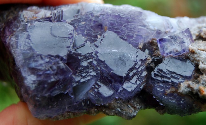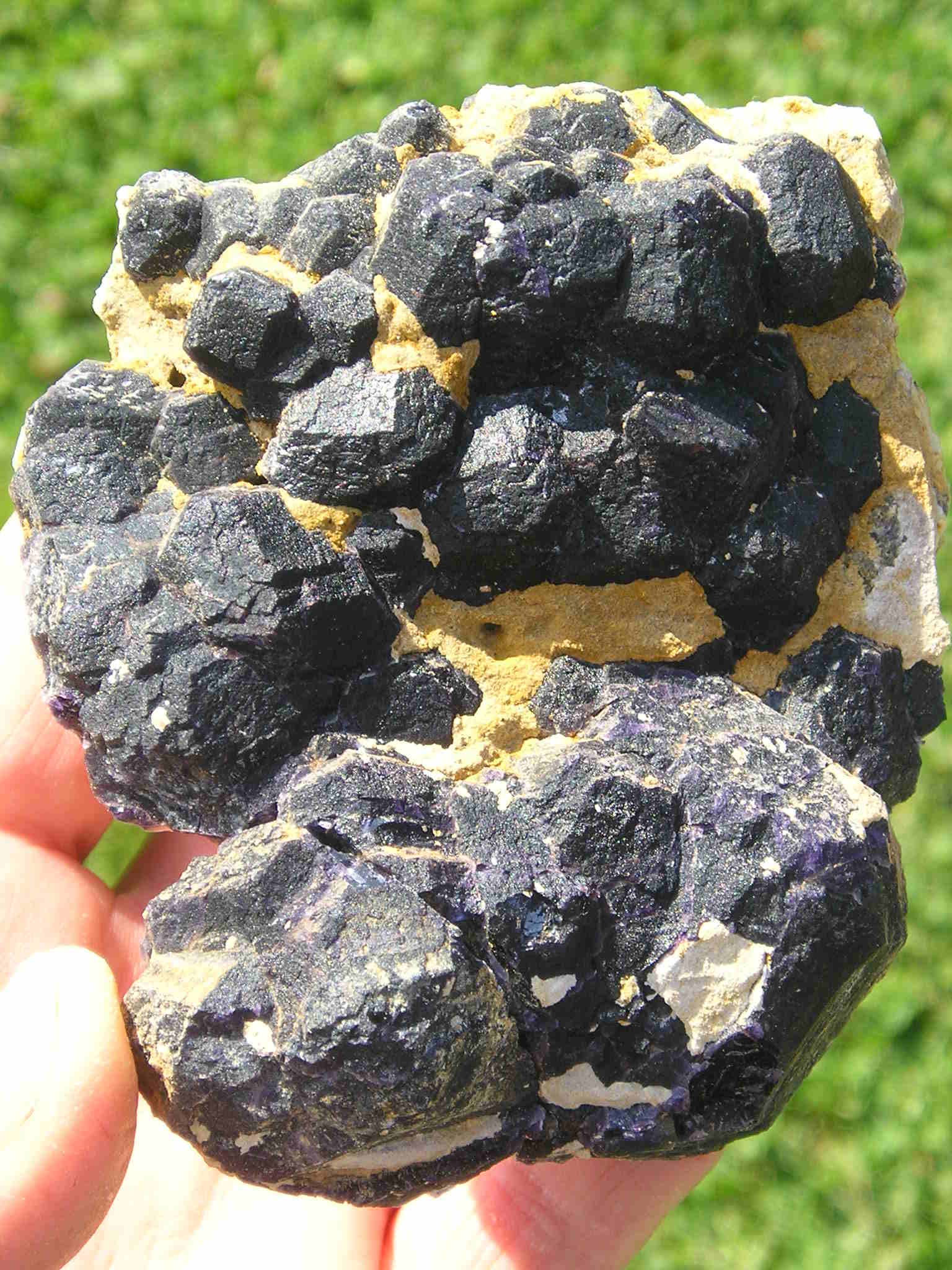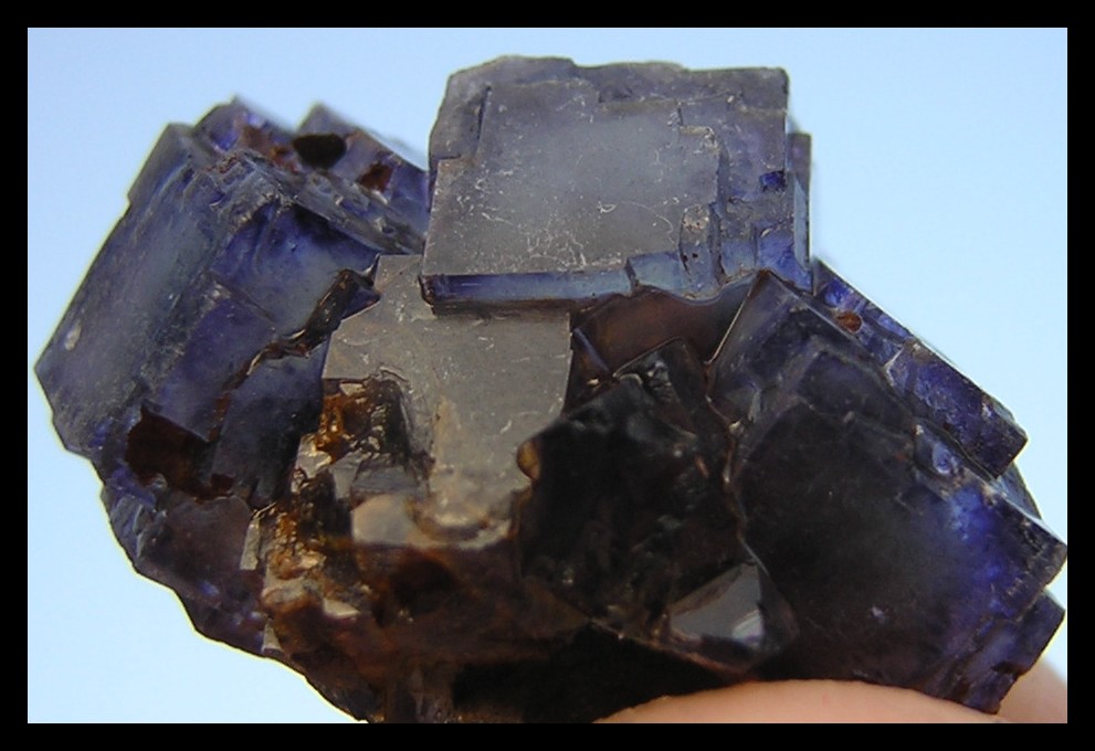 J'ai laissé à un ami qui m'avait accompagné (vers 1998) une 'tête d'enfant' avec des cristaux taille balles de ping-pong, sans un coup et sans incrustations de quartz... bleu-violet foncé.