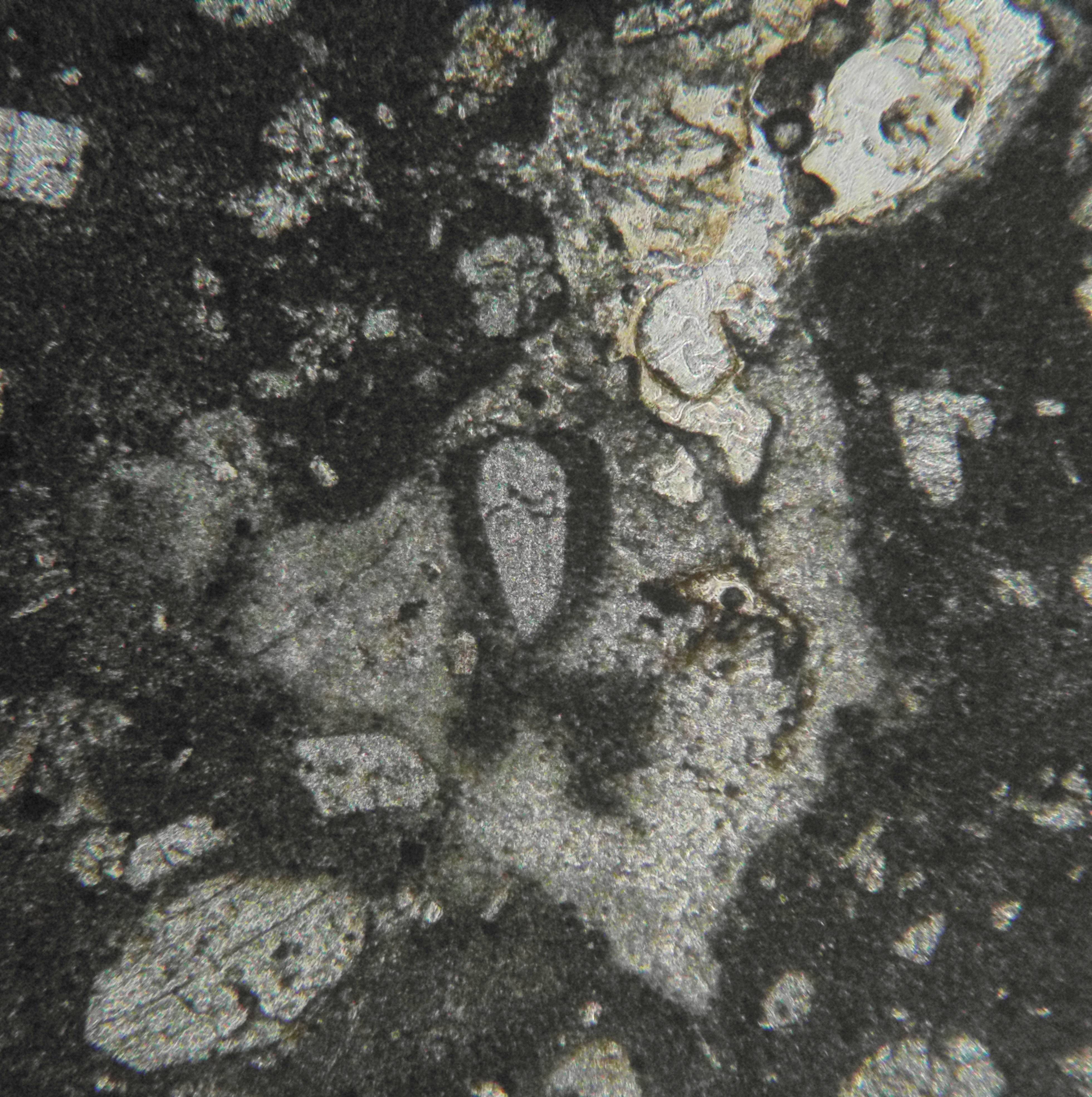 Sur les vues en LR, on distinguait, dans la mésostase, des zones grises et des zones nettement plus sombres. Les zones grises seraient-elles des zones altérées, chargées en calcite?