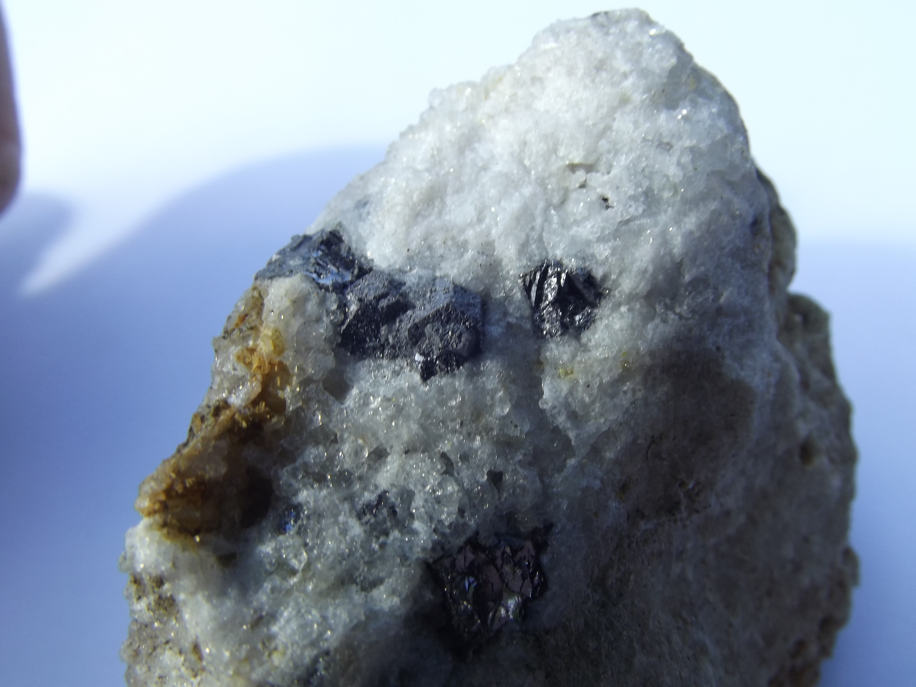Demain, si le temps s'y prête, je fait les photos et les post de: une marcassite altérée sur fluo, une galène cristallisée, grosses galènes massives, de la pyro, de la baryte, une fluo, et un petit quartz. Viendrons aussi dès que geopas m'aura fait les photos (c'est du micro): quelques cristaux de galène libre (pas commun), une cérusite avec de la fluo et bien sur de la fluo (ces trois derniers trouvailles perso).