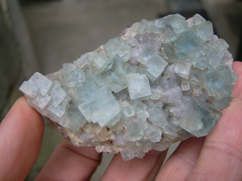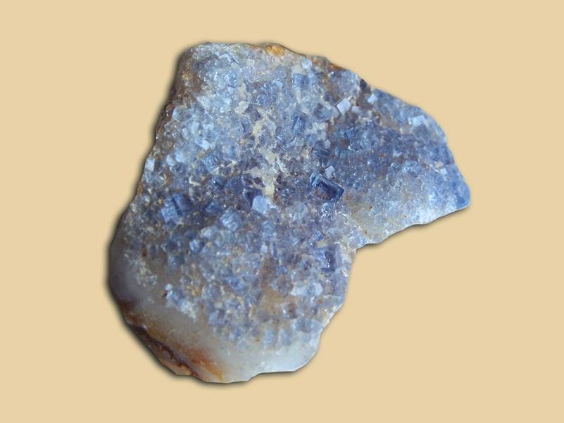 les petites gratouilles faites à l'entrée de la galerie nous on fourni moulte petites pièces de calcédoine avec des petits cube d'un bleu léger (le bleu de la barre !!!) .....