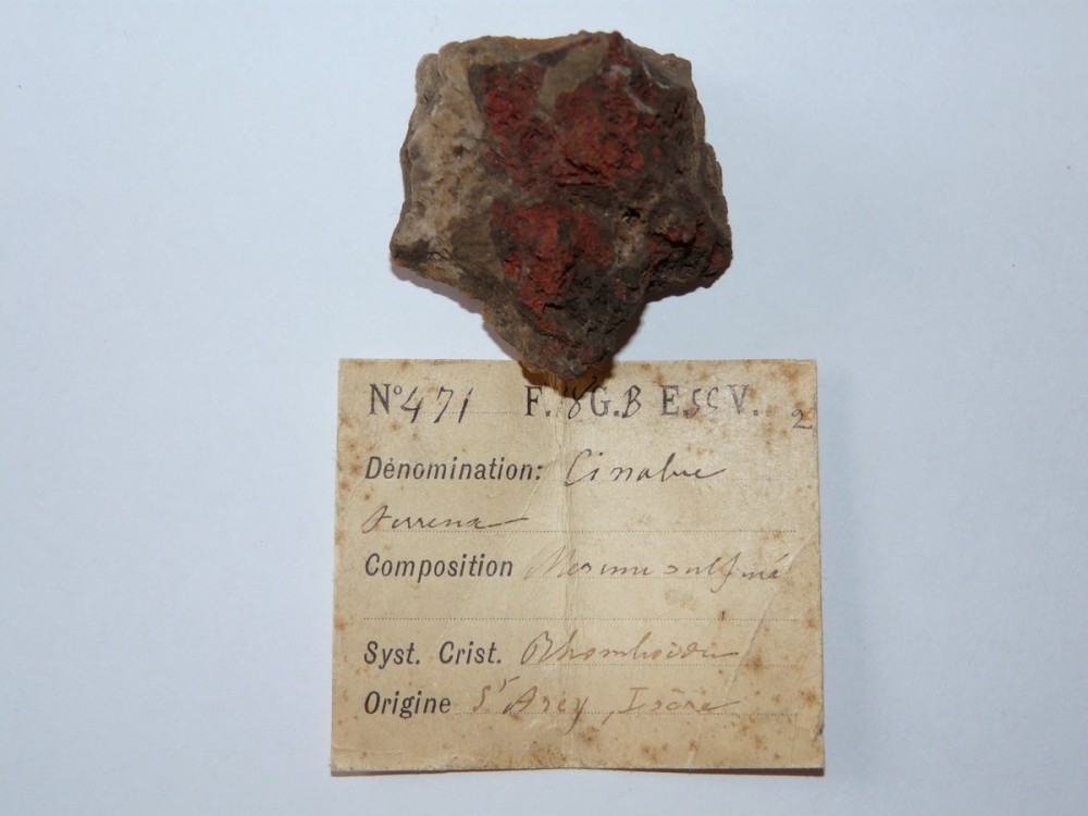 Pour info concernant le cinabre de Réalmont, l'exposition "Promenades minérales en pays tarnais" du musée de la Mine de Cagnac présentait un échantillon ancien, sorti des réserves du musée de Toulouse, me semble-t-il, et se présentant sous forme d'un morceau de filonnet de baryte d'une épaisseur de quelques centimètres à l'intérieur duquel se trouvait une masse rouge constitué de cinabre massif.