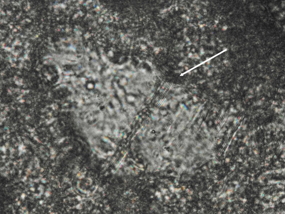 j'ai une question complémentaire, sur la photo suivante la flèche montre une zone que j'interprète comme un multi couche du même cristal,