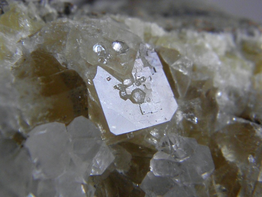 Et un cristal isolé (2.5 cm d'arrête) couronné de petits quartz à inclusions, bien nettes.