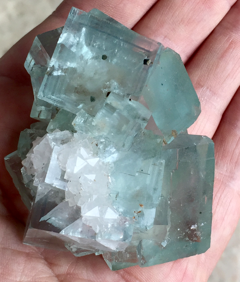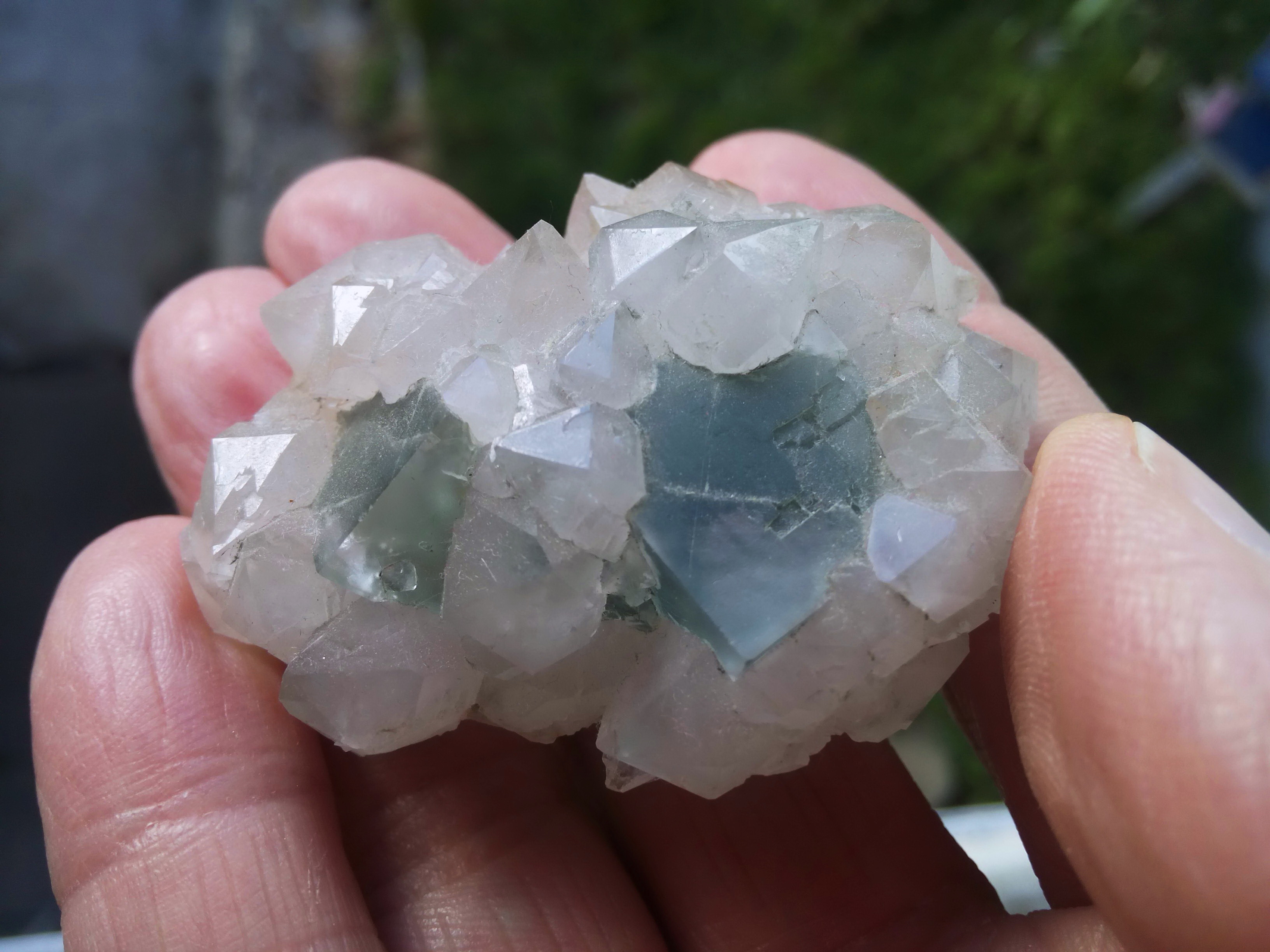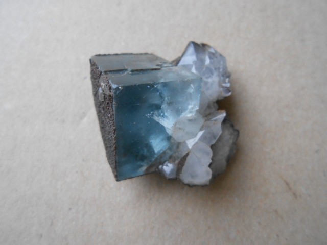 Le cristal central fait 2 cm d'arrête. Il est, hélas légèrement fissuré, mais pour du ramassage c'est déjà bien ...