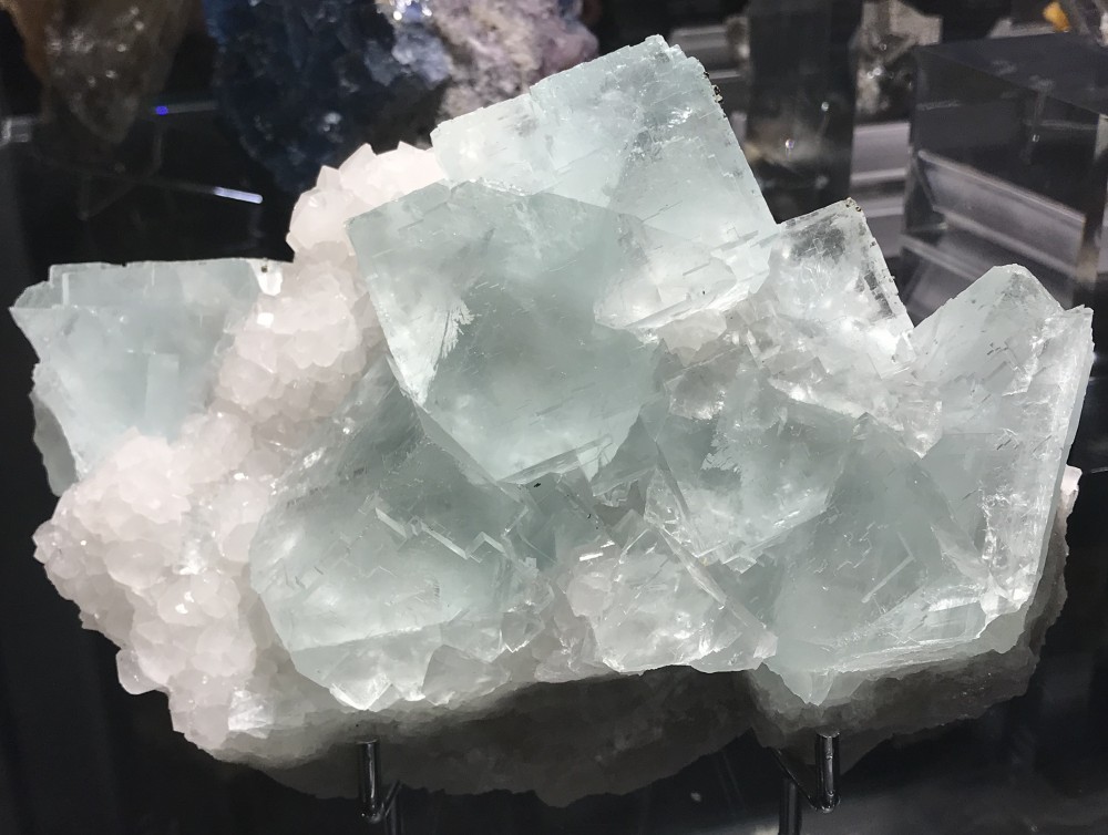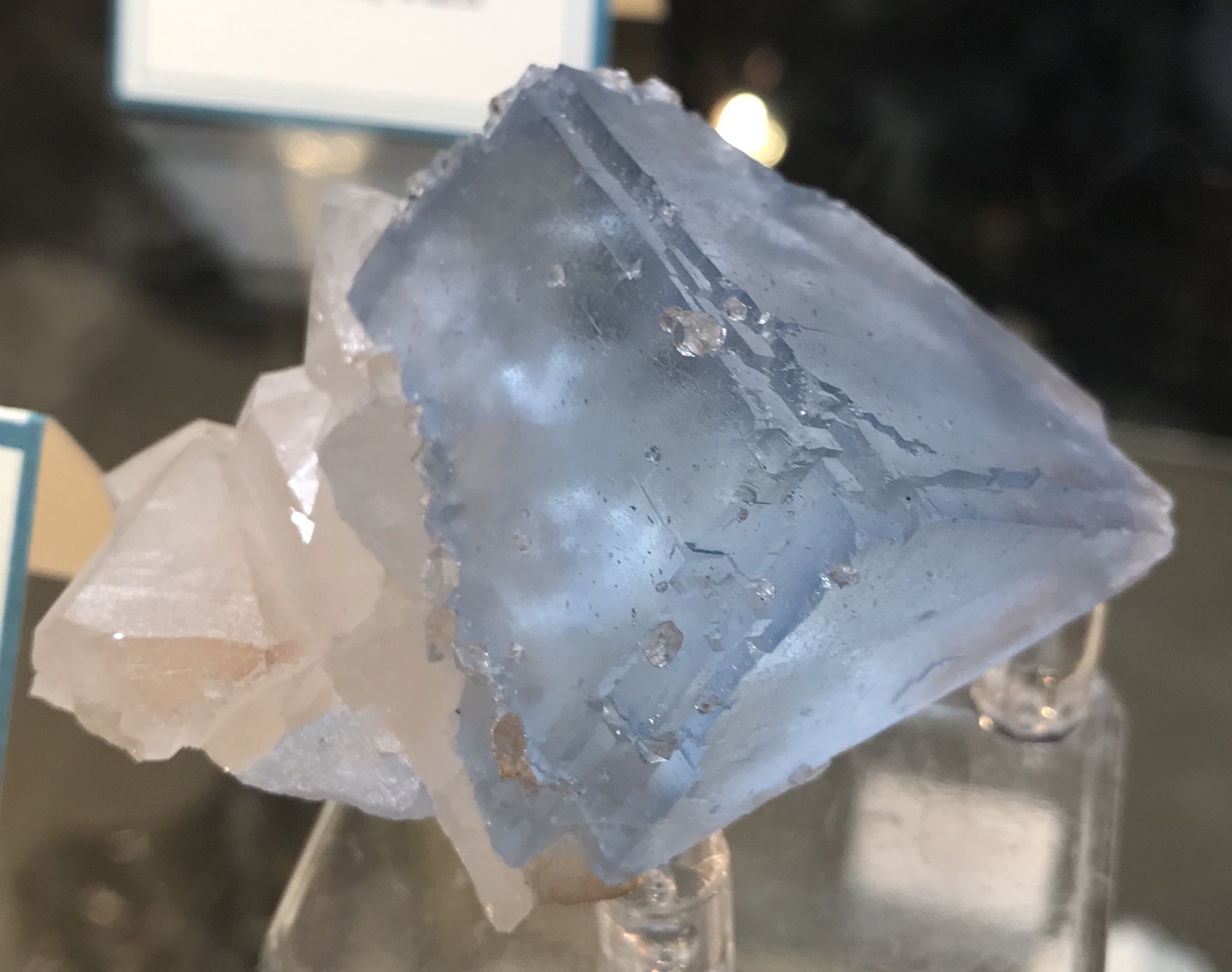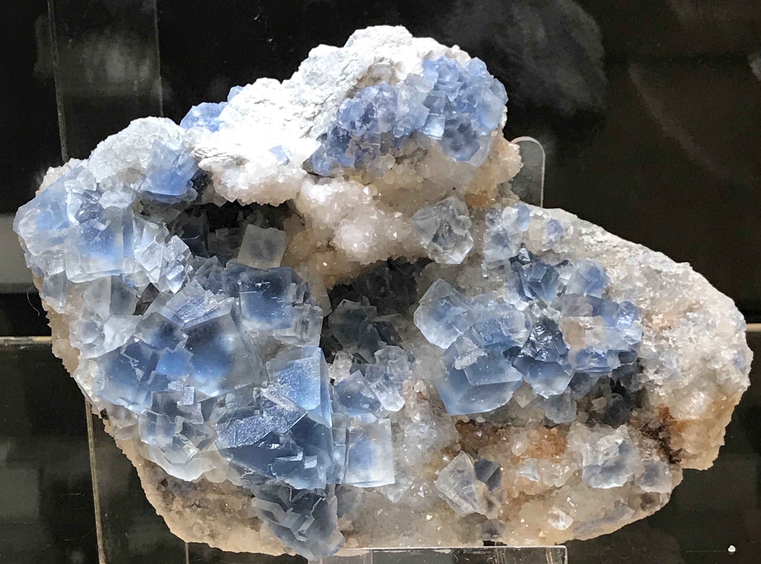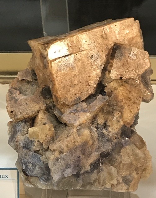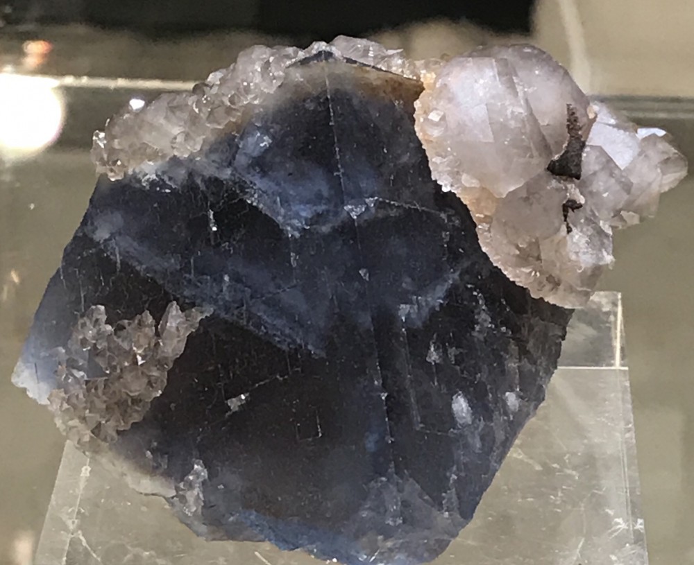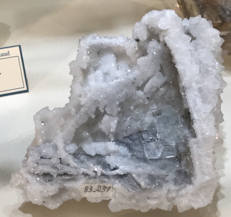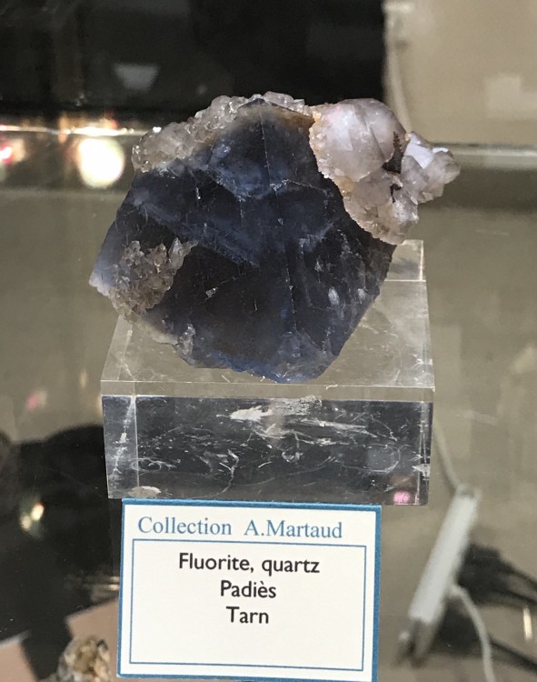Cristaux de fluorine bleue particulièrement recouverts de cristaux de quartz, mine de Padiès, Tarn.
