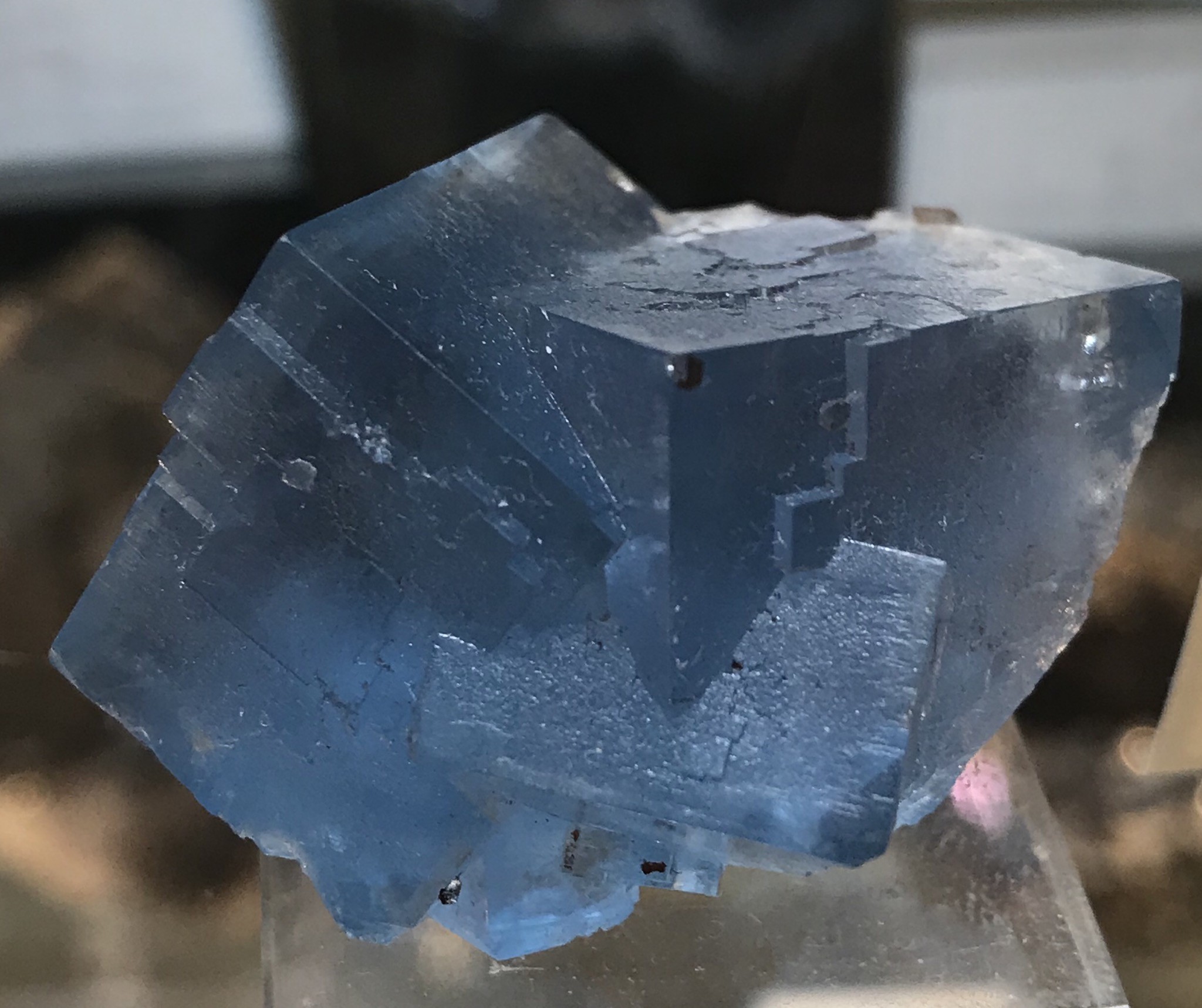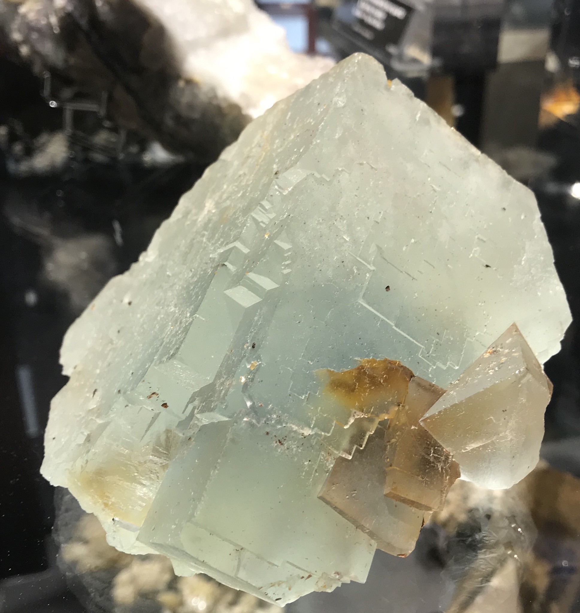 Ma deuxième participation sur géoforum avec une fluorine en cristaux polysynthétiques  6 x 5 cm détachée par dissolution de la mine d'En Bournegade. La couleur est vraiment vert d'eau en réalité