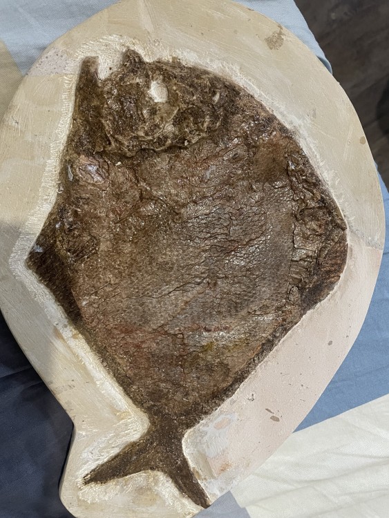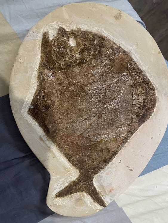 Voici un poisson (22cm) venant du turonien de Goulmima que je n’arrive absolument pas à identifier, en cherchant « goulmima fossil fish » je n’ai pas trouvé grand chose, pourtant un poisson discoïde ça ne passe pas inaperçu ! Mais je suis tombé sur une publication comme quoi l’Araripichtys est aussi présent à Goulmima ! Pourtant ce spécimen ne ressemble pas du tout mon autre Araripichthys