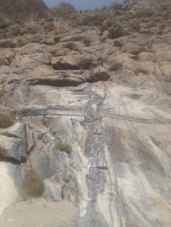 Des pegmatites à Feldspath, fluorine  et pyrite ;