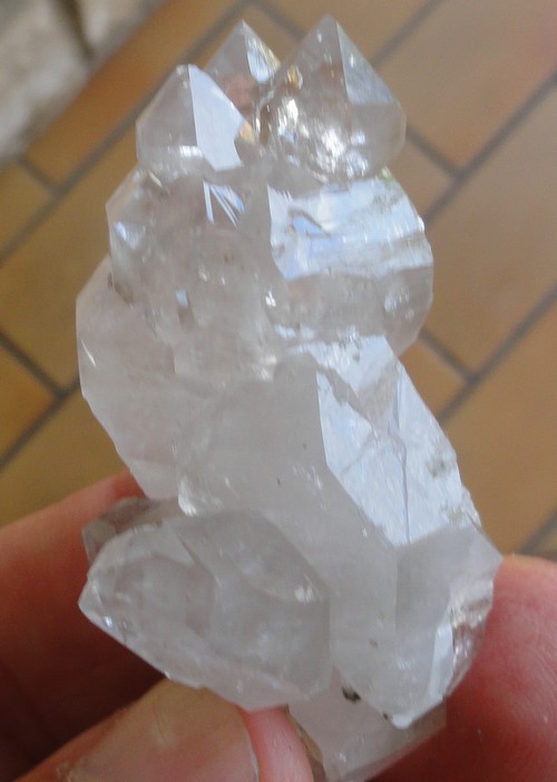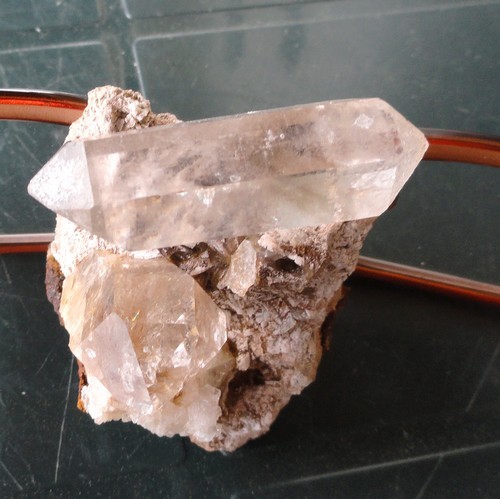 J'y ai deja trouvé des quarz bipyramidés,mais jamais de cette taille,je suis persuadé que le deuxiéme qui apparait sur la piéce est bipyramidé lui aussi,mais il est inclu dans la baryte.(dommage) mais j'aime bien quand même l'ensemble , la piéce n'est quand même pas trés grande,5cm/6cm.