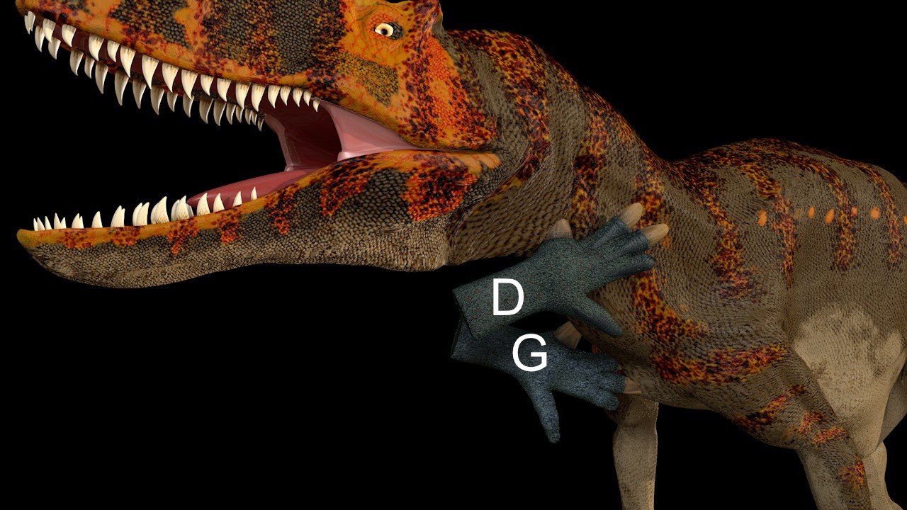 ça me fait penser aux reconstitutions des velociraptors qui ont le poignet brisé pour avoir la main en position "humaine". C'est oubler que la rotation de notre poignet n'est possible que parceque le radius peut tourner sur son axe, ce qui m'a l'air impossible chez Iguanodon. Chez les animaux qui ont la main perpendiculaire à l'axe du corps radius et cubitus se croisent. Mettre les "mains" parallèlement à l'axe du corps est contre intuitif et aurait sans doute heurté le public. Je fais des reconstitutions paléontologiques depuis presque 1/4 de siècle et même si j'ai un bon niveau en biologie je me suis déjà fait "tirer les oreilles" par des paléontologues parceque je m'étais laissé emporter par mon imagination.  Ma plus grosse bourde (et honte) est d'avoir mis un cordon ombilical à un embryon de Dinosaure 😟.