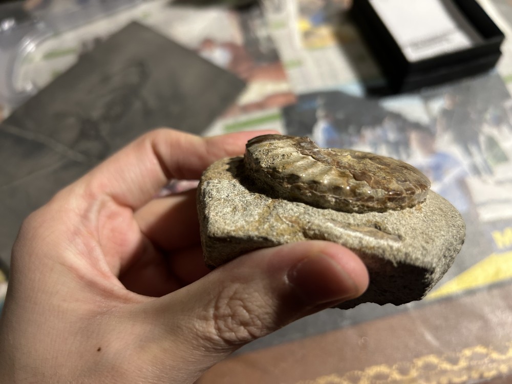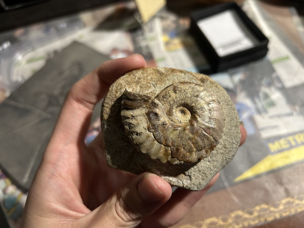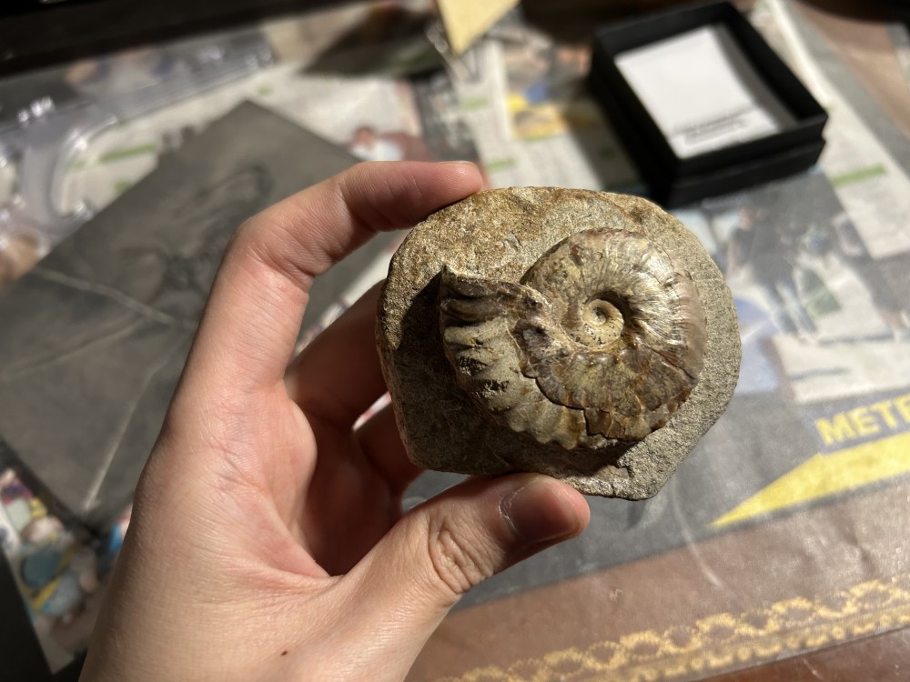 J’ai reçu aujourd’hui une ammonite de 5cm assez particulière datant de l’Albien superieur (100 Ma) provenant de Besokty, Mangyshlak de l’Ouest du Kazakhstan. Je l’ai acquis auprès d’un site spécialisé dans les fossiles (renommé mondialement…) et elle a été identifiée comme Karamaiceras dont la seule espèce est kolbajense un synonyme de … Placenticeras kolbajense !!!!!!:applaudir: Donc qui dit placenticeras dit Kevin … et je n’ai même pas eu le temps de bien regarder que je l’ai pris (réflexe instinctif devant une placenticeras) mais le problème est que après l’avoir reçu j’ai remarqué que sa dernière tour était fortement costulé ainsi que ses cotes le rapprochement plus d’Anahoplites (bien que les 2 font tous partis de la famille des Hoplitidae) …. Ça tombe mal car dans cette formation on trouve aussi des Anahoplites : Semenovites (Anahoplites) litskovi :triste: Je suis deja pratiquement sûr que c’est une Anahoplites mais je voudrais une confirmation… je veux encore y croire que ça soit juste une magnifique petite placenticeras un peu trop costulé:pleurer: