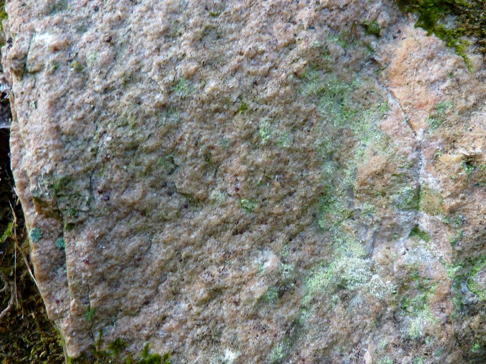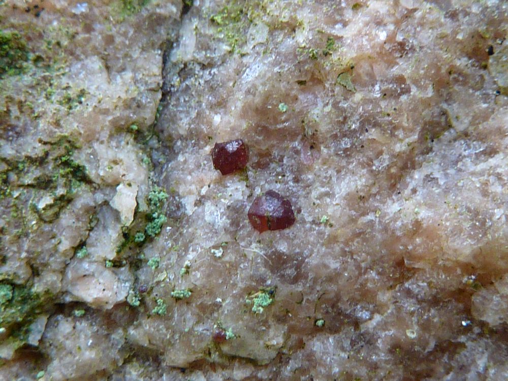 Voici les fameux grenats en place dans un rocher le long d'un chemin. Ils sont si petits (moins du millimètre) qu'il faut une bonne vue pour les apercevoir.