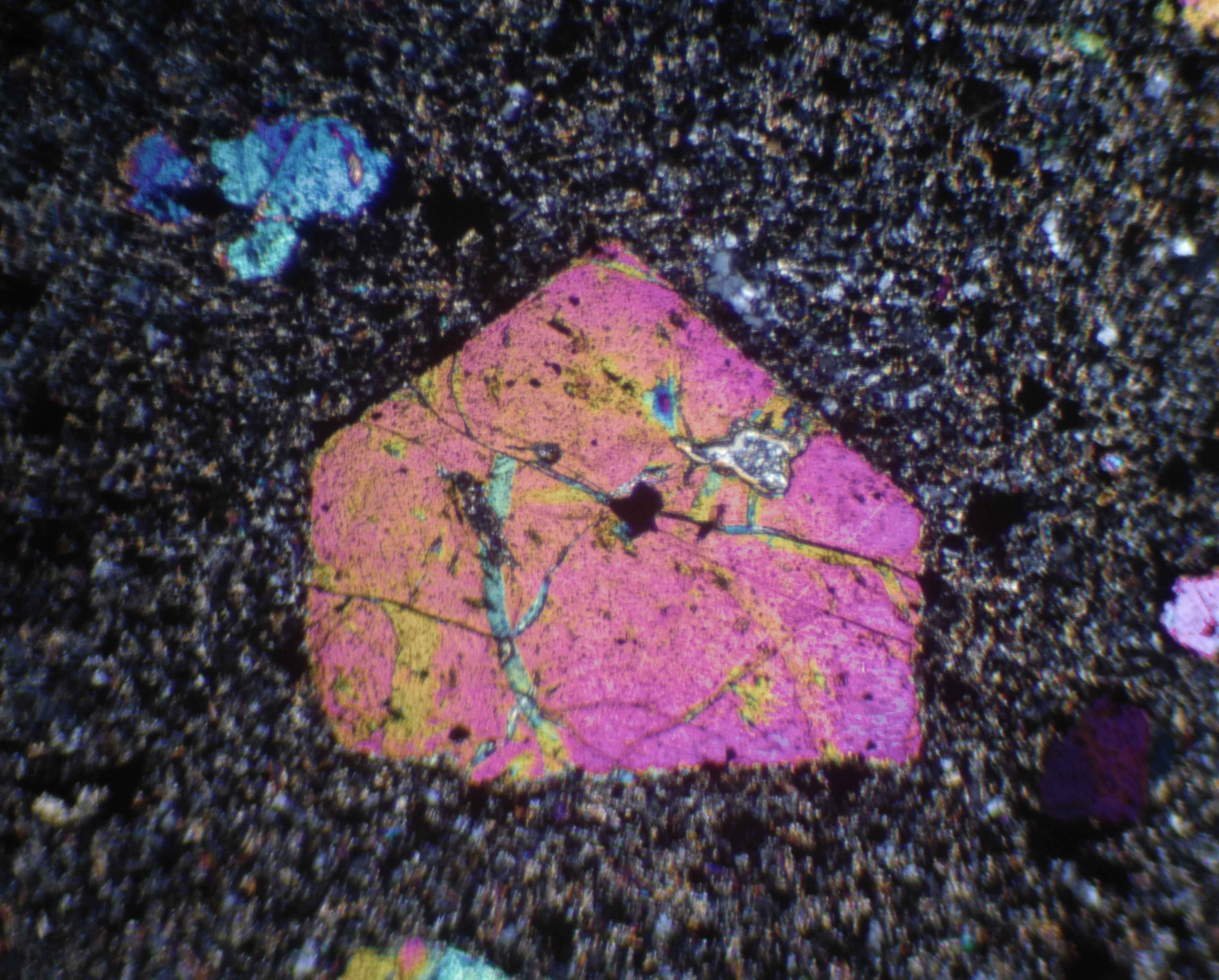 Il faudrait que la lame soit trop épaisse pour obtenir ces couleurs, or les teintes de polarisation des olivines avaient l'air normales, voire basses. Il y en a d'autres ?